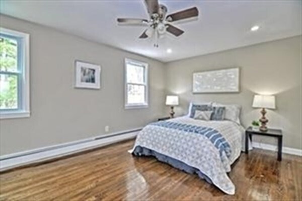 Sparkling and tastefully renovated single-family home in a lovely Wayland neighborhood. The open first floor features a formal living room with access to a large deck overlooking nature, and a dining room with a stunning fireplace. The beautifully redone eat-in kitchen with high-end stainless-steel appliances opens to a second deck, perfect for summer barbecues. A convenient first-floor bedroom sits next to an updated full bath. The modern primary suite, two additional bedrooms, and a renovated full bath complete the second floor. The finished walkout lower level offers high ceilings, a family room, playroom, office, cedar closet, and laundry/utility room. Additional highlights include hardwood floors throughout, 200-amp service, newer heating system, recessed lighting, new driveway and additional 3 cars parking lot. Located in desirable South Wayland near the town beach, Natick Collection, Shoppers World, Mass Pike, Logan Express, and top-rated Wayland school