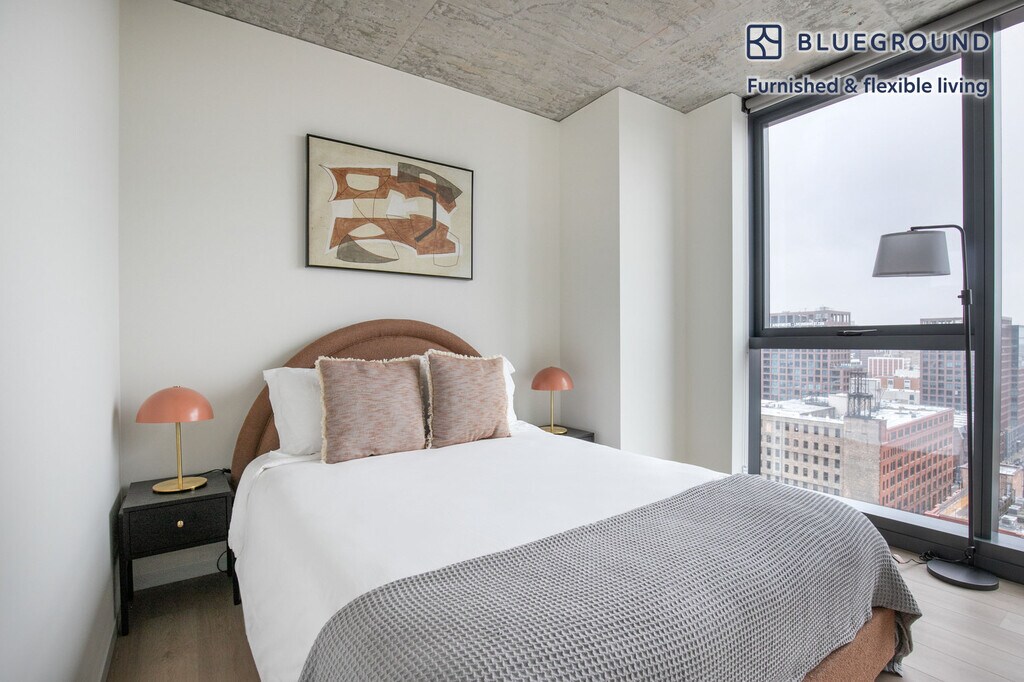 Show up and start living from day one in Chicago with this sophisticated two bedroom Blueground apartment. You’ll love coming home to this thoughtfully furnished, beautifully designed, and fully equipped Fulton Market District home with stunning views over the city. (ID #CHI1067) The advertised rate of $3,710/month is the lowest available price, based on a 1 month(s) and 24 day(s) stay with a move-in date of March 1, 2026. If you’re looking for a 1-year stay, the rate is $4,800/month. Rates vary depending on the duration of stay, season, and other parameters. For exact pricing and additional pricing components, please visit our website and enter your desired move-in and move-out dates. The rate is applicable when billed upfront; it can be higher if billed in multiple payments. Brokers are welcome to reach out. Were you looking for an unfurnished lease? Try Blueground instead and upgrade from unfurnished to furnished living: - Furnished at rates comparable to unfurnished - No setup or furniture costs - save thousands - Move-in ready - save time, just bring your suitcase Designed with you in mind As with any Blueground apartment, you’ll find a thoughtfully designed space complete with beautiful furniture and a fully equipped kitchen in this two bedroom property. And, thanks to our superior quality mattresses, luxury linens, and towels, you can relax knowing you’ll always feel comfortably at home. When you’re ready for some fun, you can take in the Chicago vibes or bring the entertainment to you with the premium wireless speaker or smart TV. This apartment also offers in-apartment laundry. Sleeping arrangements Queen Bed, 63in/160cm Queen Bed, 63in/160cm Amenities Building amenities unique to this two bedroom apartment include an on-site: - BBQ Area - Dryer - Elevator - Swimming pool - Washing machine Arrival and ongoing support The entire apartment is yours to enjoy! Throughout your stay, you’ll have access to our Client Experience team through the Blueground App. You can schedule additional cleanings, submit maintenance requests, and view our neighborhood recommendations with just a few taps. We’ll share all details upon confirmation of your stay. Other things to note Building amenities may have an extra cost. This Blueground apartment has flexible lease options, allowing you to book it for one month, a year, or more. We take great pride in ensuring every photo displayed is shot in our own units with our actual furnishings. That said, we regularly refresh our decor and furniture arrangement, which may differ from what’s pictured. Also note - This apartment is not located near public transportation - There have been reported instances of homeless populations nearby - This apartment is located in an industrial zone, so it can be noisy inside from time to time [SI]