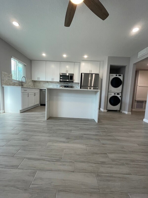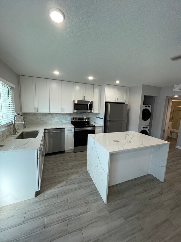 Experience a rare opportunity to rent a 1st-floor apartment in a newly renovated community located in the heart of Sarasota’s historic Rosemary District. Just minutes from Downtown Sarasota, 6 blocks from the Bayfront, and a quick 10-minute drive to Lido Beach, this location offers the best of both vibrant city life and tranquil coastal living. Step outside to world-class dining, entertainment, and nightlife, all within walking distance. This stylish 2-bedroom, 1-bath unit is thoughtfully designed with modern finishes, featuring: Stainless steel appliances, including a stove, microwave, refrigerator, and in-unit stacked washer and dryer.Large closets with trendy barn doors.Oversized windows that fill the space with natural light. The community blends modern elegance with peaceful living, perfect for those who enjoy the energy of the city but value a quiet retreat. Additional Features: On-site storage units available: $150/month (51"x63") or $100/month (41"x53").One reserved parking space in a private lot.Ample guest parking spots.Cats welcome; dogs evaluated on a case-by-case basis. $300 pet fee per pet. Please Note: Photos show staged furniture; the unit is rented unfurnished. Tenant is responsible for utilities (gas, water, sewer, trash, cable/wifi, and electricity). Don’t miss out on this rare opportunity to live in one of Downtown Sarasota’s most sought-after neighborhoods!