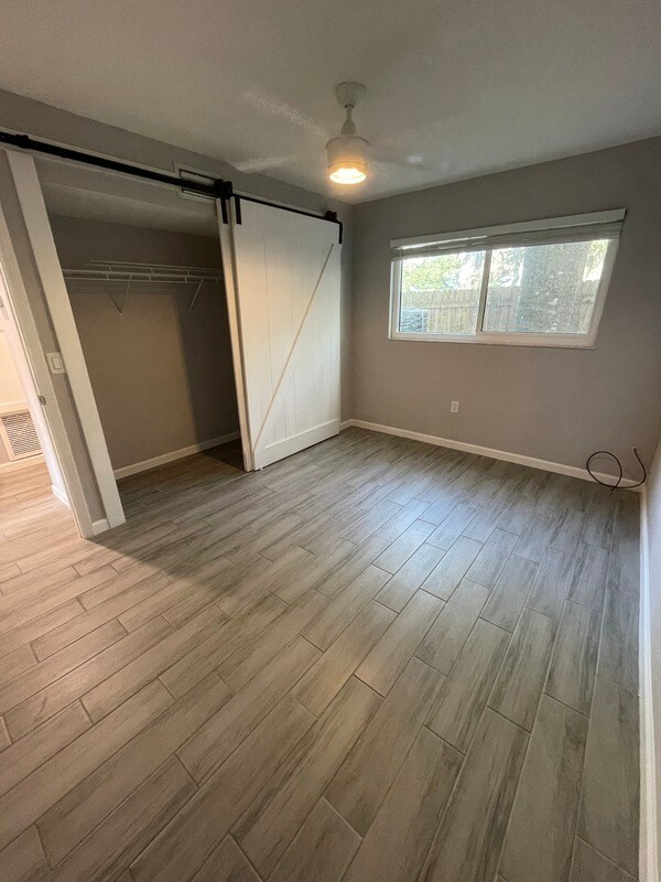 CURRENTLY OFFERING TOURS! Rare opening for a 2nd floor (top), corner apartment. Newly renovated apartment community minutes away from Downtown Sarasota in the historic Rosemary District. You are steps away from world-class food, drink, and entertainment, and are only about 10 minutes away from Lido Beach. This 1/1 unit is complete with stainless steel appliances including a stove, microwave, refrigerator, and an in-unit stacked washer and dryer. Closets are custom-fitted with trendy barn doors. The apartments are outfitted with large windows to allow for plentiful amounts of natural light. These are stylish, modern apartments with tasteful appointments throughout. The area is perfect for someone who lives for the hustle and bustle of city life but appreciates the peace and quiet of a small apartment community. Please note that photos display staged furniture. This unit is unfurnished. There are also on site storage units available for $150/month (51"x63") and $100/month (41"x53"). Tenant pays for gas, water, sewer, trash, garbage, cable/wifi, and electricity. Cats are accepted but dogs must be evaluated on a case-by-case basis. Unit includes one reserved parking space in a private lot.