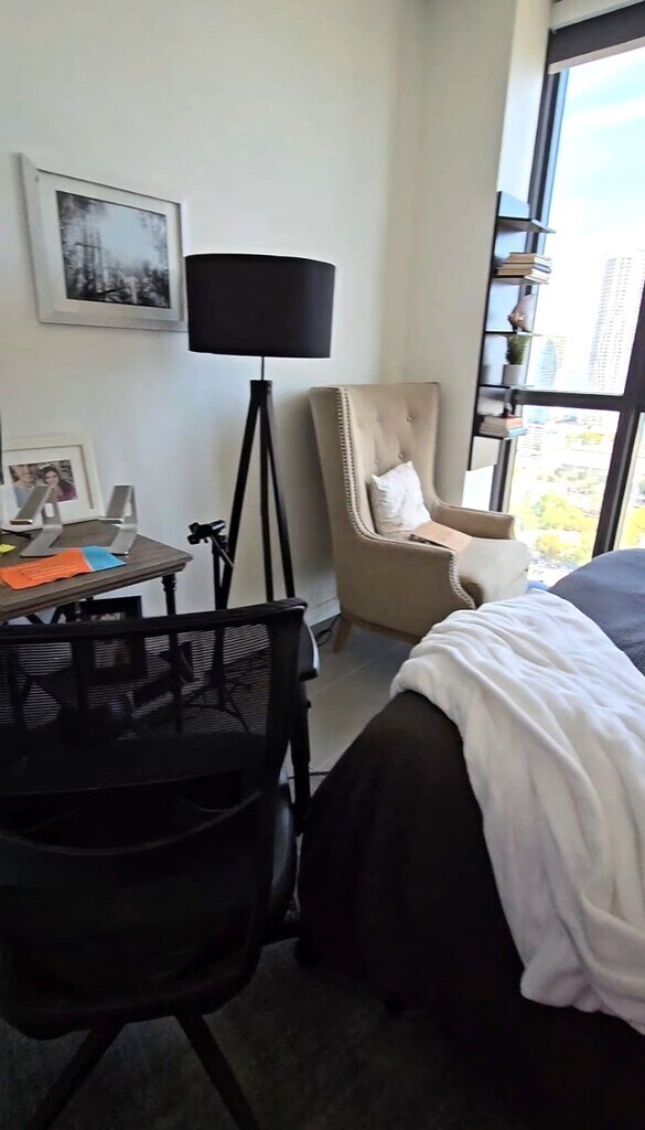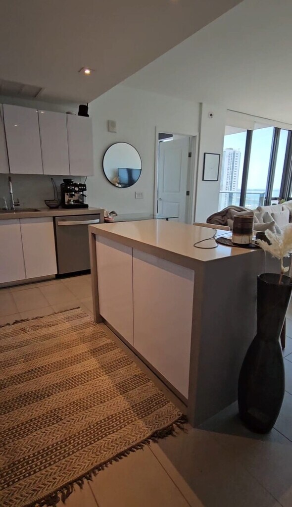 Spacious partially furnished studio featuring high ceilings, an expansive terrace with high-impact sliding panoramic windows, stainless steel appliances, a washer & dryer, a microwave oven, and included basic cable, internet, and water. The unit comes with a Murphy bed, a round glass table with three chairs, and an open rack divider separating the kitchen and living area. Enjoy over 3,000 sqft of resort-style amenities, including three swimming pools (rooftop and two on the 9th floor), indoor and outdoor jacuzzi, sun deck, state-of-the-art gym with waterview, spa, sauna, two massage rooms, yoga garden, racquetball and volleyball courts, social room, children’s playground, and business center. The building offers 24-hour valet, security, and concierge services, and is within walking distance to the Metro Mover, with beautiful views of the Port of Miami and Downtown. MLS # A11999643