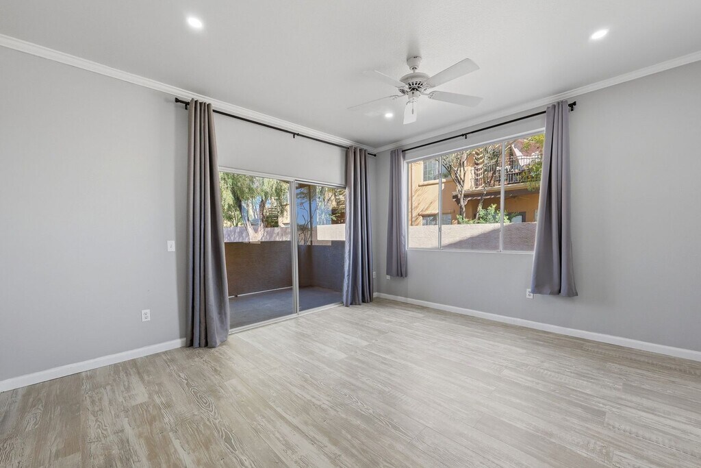Charming and move in ready 2 bedroom and 1 bath condo in the desirable San Simeon community. Neutral paint tones throughout. The eat in kitchen features a breakfast bar area, and a dedicated pantry. The owner's suite is generous in size and has a walk in closet. The bathroom has dual sinks and a tub/shower combination. You will also find a nice linen closet in the bathroom. This unit has lots of windows bringing in natural light. Full size washer and dryer included. The great room looks over the full size patio where you will enjoy your morning coffee. This resort Style community features 2 Pools/Spa (one is heated), a fitness Center and volleyball Court. Apply at Tenant will pay $5.00 monthly admin fee, $24.00 monthly HVAC Preventative Maintenance. Total move-in cost equals 1 month's rent, 1 month's security deposit (or alternative), $400 cleaning deposit, $250 carpet cleaning fee.