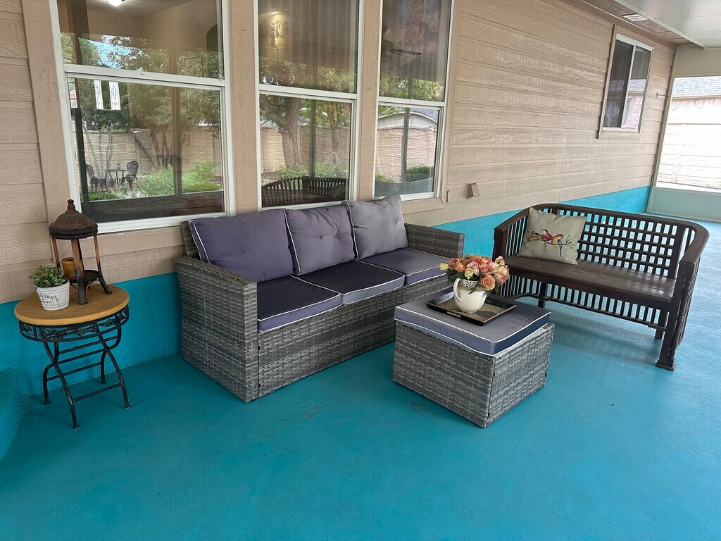 Welcome to our Casa del Solterra, fully furnished, with all utilities, yard maintenance, and internet provided, where time slowly passes. Enjoy the spacious indoor and outdoor covered patio, perfect for relaxing. There are three spacious bedrooms with two full bathrooms. With an open floor plan, the Property also offers a beautiful dining area and cozy family room. Not only that, the property is centrally located, it gives you and your family easy access to San Antonio and Austin, where many local amenities can be found.