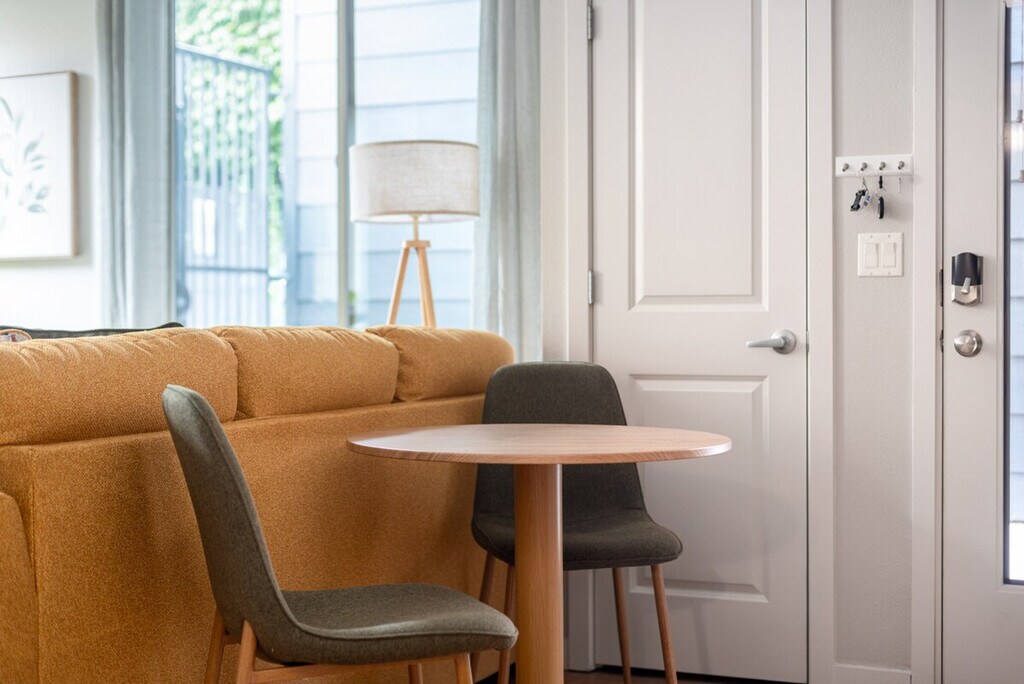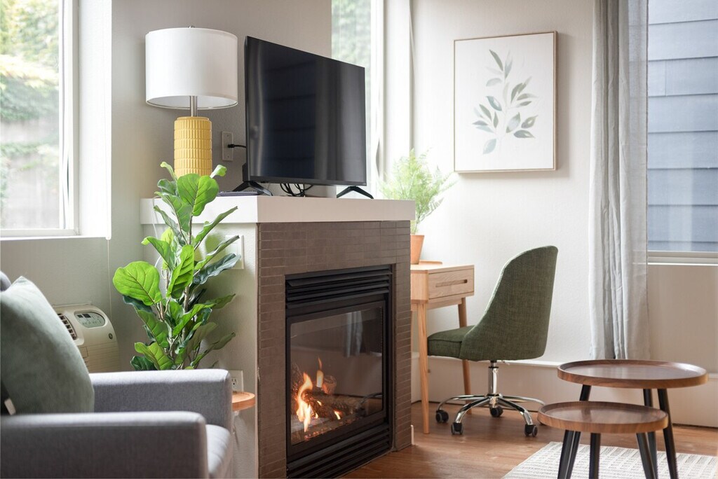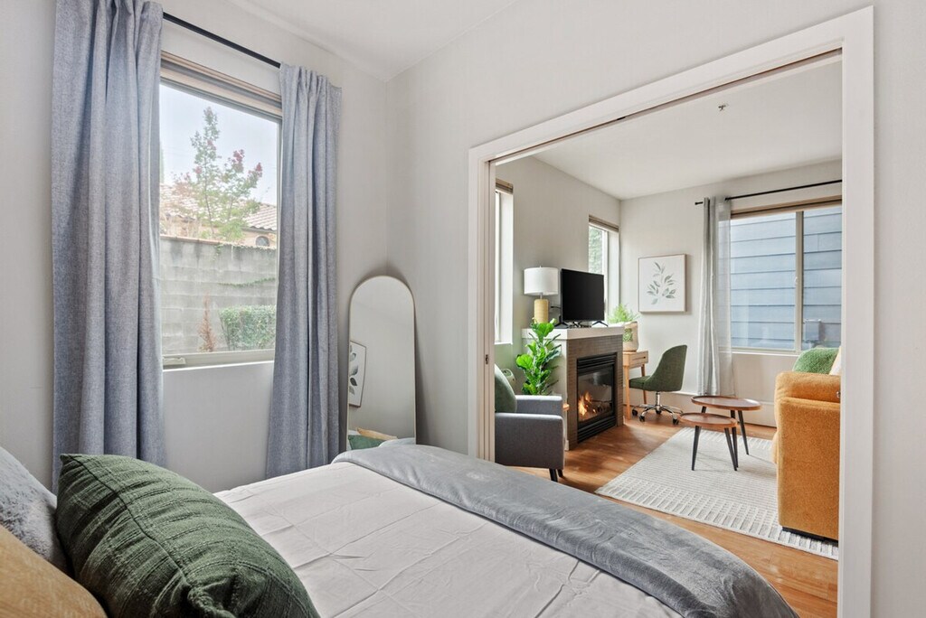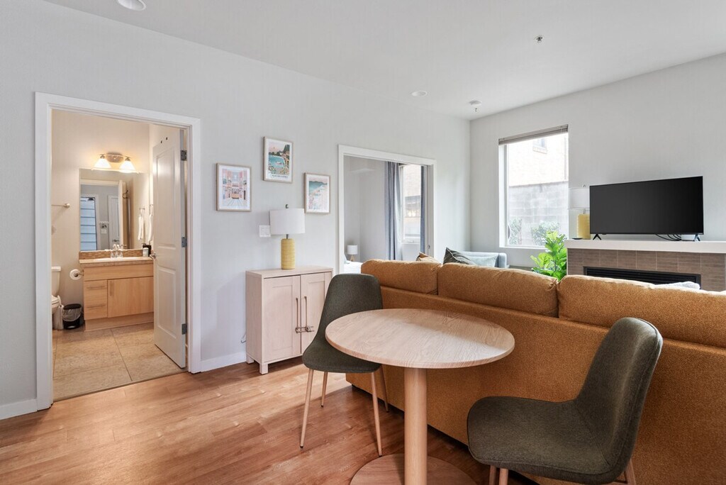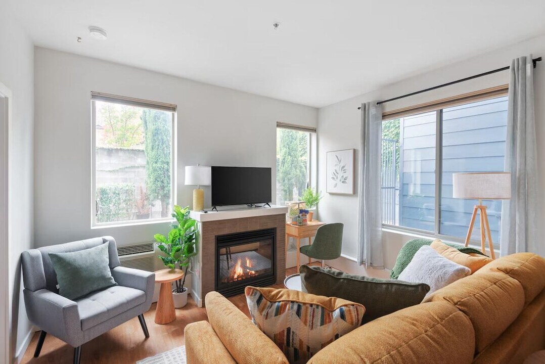 The advertised rate of $2,512/month is the lowest available price, based on a 30 day(s) stay with a move-in date of March 15, 2026. Rates vary depending on the duration of stay, season, and other parameters. For exact pricing and additional pricing components, please visit our website and enter your desired move-in and move-out dates. The rate is applicable when billed upfront; it can be higher if billed in multiple payments. Feel at home in this ground-floor, 500 sq ft 1-bedroom, 1-bath apartment in Nob Hill, offering everything you need for longer stays. This apartment features a gas fireplace, A/C, a bathroom with a full bathtub, a smart TV with streaming capabilities, a full kitchen with a gas stove, dishwasher, and all cookware essentials, and an in-unit washer and dryer. The building is gated with secure access and has a smart lock for easy, keyless self check-in. Reserved garage parking is available in a secure, covered garage, and bike storage is available in the garage on a first-come, first-serve basis. Located in one of Portland’s most sought-after neighborhoods, this apartment is a 4-minute walk to Tri-Met and walking distance to Trader Joe's and Whole Foods. It is .9 miles from Legacy Good Samaritan, 2.5 miles from Legacy Emmanuel, 2.8 miles from OHSU, and 4.9 miles from Providence St. Vincent. This apartment building is located across from a grammar school, so you may hear kids during school hours, though it is fairly quiet when the windows and door are closed. The unit is also located near one of the gated entrances, so you may hear other residents passing through. The entire building and garage parking is secure fob/key entry only. If you arrive after 9pm and can't figure out how to access your unit despite the instructions, you will need to find alternative accommodations for the night and we will accommodate you when office hours resume. Requests for refunds due to failure on the guests part to adequately follow check in instructions will be denied. Guests have access to the unit, parking garage, bike storage, courtyard, mailbox, and trash room. There is a locked cabinet in the living room that is for owner use. This apartment is accessible and great for people who need stair-less entry. [SI]