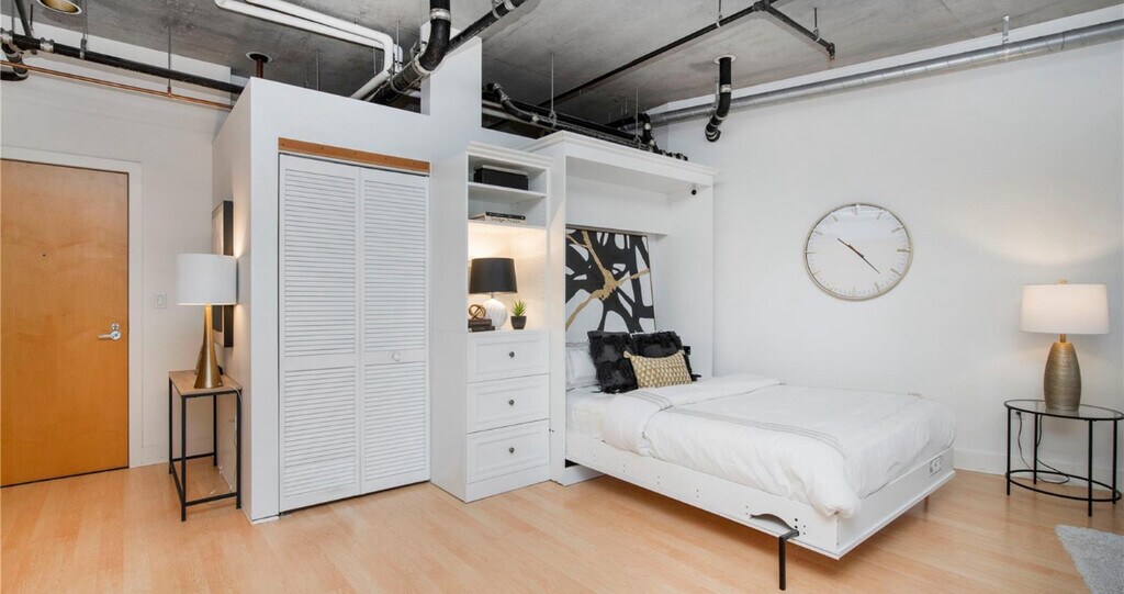 Live in the heart of Downtown Denver at the prestigious Park Place Lofts in Riverfront Park! This urban studio apartment perfectly blends contemporary design with comfort and convenience. Soaring 10-foot ceilings and expansive windows with electric shades fill the home with natural light and showcase beautiful city and Millennium Bridge views. The open-concept layout features a custom built-in Murphy bed, providing the ideal balance between living and sleeping space. The modern kitchen offers abundant maple cabinetry and plenty of room to cook and entertain. Located in one of Riverfront Park’s most desirable buildings, you’ll be just steps from Union Station, fine dining, boutique shops, the 16th Street shuttle, and 88 acres of open park space with walking and biking trails right across the street. Enjoy true downtown living in a master-planned residential community offering the best of Denver’s urban lifestyle — where the city’s energy meets peaceful green space.