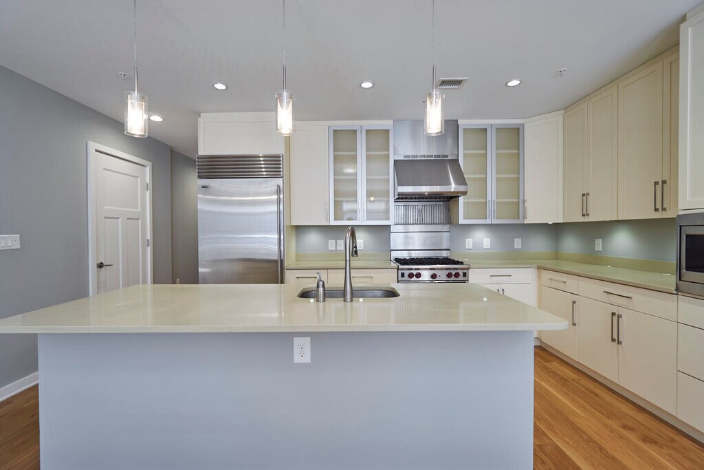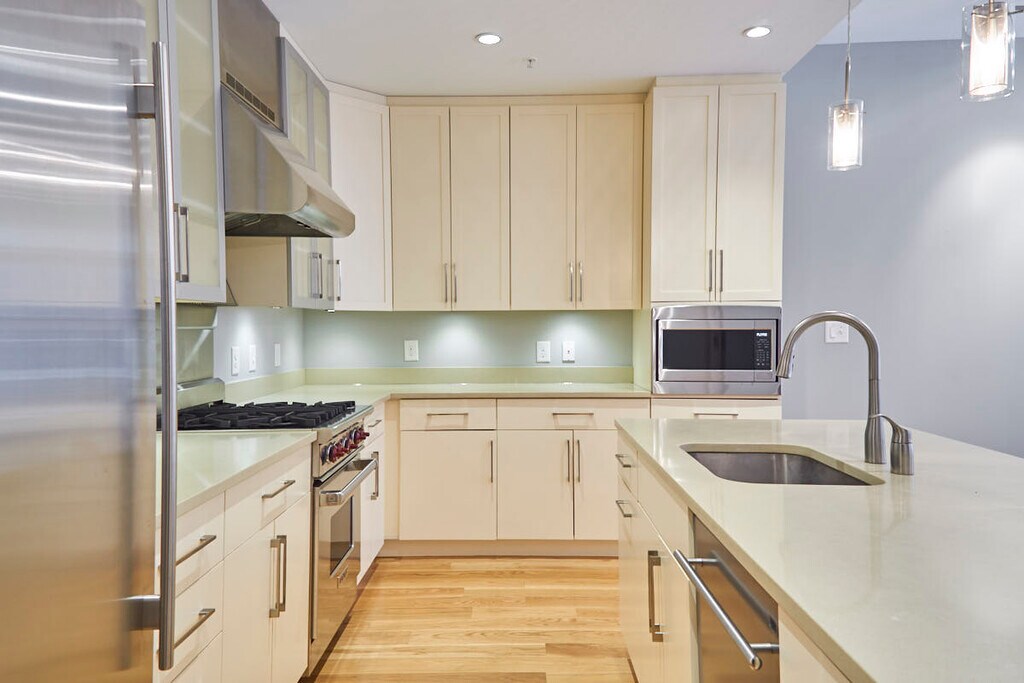 Luxurious corner end-unit residence at Gaslight Square, ideally located in the heart of Arlington. A secure fob-controlled building provides seamless access throughout, while a private elevator opens directly into the unit (2B), offering both convenience and privacy from the garage level. This light-filled two-bedroom, two-bath condominium features beautiful hardwood and engineered hardwood floors throughout and an open, thoughtfully designed layout. The gourmet kitchen is anchored by a large center island and appointed with high-end appliances including a Sub-Zero refrigerator, Wolf range, and Monogram microwave, along with stainless steel finishes and a striking backsplash. Additional upgrades include a newly installed dishwasher, touchless kitchen faucet, and built-in soap dispenser. Designed for comfort and modern living, the home features custom California Closets with full build-outs in both bedroom closets as well as the bathroom closet, providing exceptional storage and organization throughout. The spacious primary suite offers a relaxing retreat with a luxurious en-suite bath featuring dual vanities. Step outside to the private balcony, perfect for morning coffee or evening unwinding. Additional conveniences include one assigned garage parking space and a garage clicker for easy access. With its corner-unit privacy, direct elevator entry, and unbeatable location just moments from Arlington’s vibrant shops, restaurants, and Metro access, this residence offers an exceptional blend of luxury and convenience.