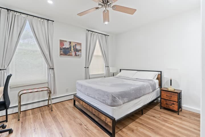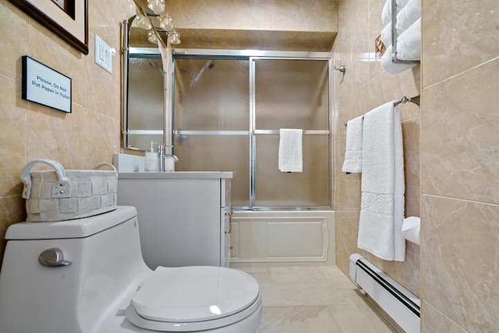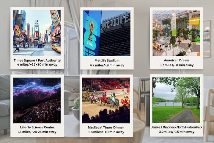 The advertised rate of $5,818/month is the lowest available price, based on a 30 day(s) stay with a move-in date of March 25, 2026. Rates vary depending on the duration of stay, season, and other parameters. For exact pricing and additional pricing components, please visit our website and enter your desired move-in and move-out dates. The rate is applicable when billed upfront; it can be higher if billed in multiple payments. Feel at home in this bright, peaceful 3-bedroom apartment located in a safe residential neighborhood of North Bergen, NJ. This apartment is just 15–20 minutes from Times Square and 10 minutes from the FIFA World Cup 2026 at MetLife Stadium and American Dream Mall. This apartment offers a full kitchen with a sink, oven, stove, microwave, fridge/freezer, salt, pepper, olive oil, pots and pans, glassware, utensils, coffee maker, mugs, dining table/benches for 6, and a 6-set plate and cup set. The living room features a comfy sofa that sleeps 1 and a smart 65” 4K TV with free Netflix and Prime. The bathroom is stocked with clean towels, bodywash, shampoo, toilet paper, a mirror, vanity sink, toilet, hairdryer, and a first aid kit. Each bedroom features blackout curtains, adjustable heating, a dedicated A/C unit (seasonal), a new mattress, pillows, linens, and large windows for natural light. The master bedroom includes a queen-size bed, closet, large wardrobe, and a white noise machine. Bedroom 2, accessed through the master bedroom, and bedroom 3 both have a full-size bed and bedroom 2 also has a small walk-in closet. Free gated private parking is available next door. This apartment is near the Meadowlands Convention Center, American Dream Mall/Nickelodeon Universe, Liberty Science Center, and Medieval Times. It's also within walking distance of a supermarket, post office, and local dining options, including Cuban, Mexican, Chinese, and pizza restaurants. Located in the Midtown area of North Bergen, NJ, this is an excellent location for anyone who wants to stay in a calm place outside of the city while still being able to easily visit and explore all that New York City has to offer. The neighborhood is a diverse community with a great mix of ethnicities and cultures. This means you'll have access to a variety of restaurants, shops, and cultural events to explore during your stay. Vehicles will be towed or fined $250 without notice if you enter, stop, or park inside the white gated driveway at 1622 Union Tpke; your parking space is at 1626 Union Tpke. Unauthorized late check-out will incur a charge of $25 per 30 minutes. Quiet hours are from 10 PM to 8 AM, with a $50 fine after the 3rd warning. There is a $50 security risk fee if the green gate is left open between 7 PM and 7 AM or if the front door is left open and unlocked at any time. No unauthorized guests are allowed, with a penalty of $50 per night. No parties, events, or large gatherings are permitted, with a $500 fine. No smoking or vaping is allowed indoors, with a $500 fine. No pets are allowed due to this being an allergy-sensitive space. Fines double after the first offense, and tampering with security cameras, noise sensors, smoke alarms, or locks may result in immediate termination of your reservation without refund. Check-out is by 10:00 AM. Includes a dedicated workspace for remote travelers. [SI]