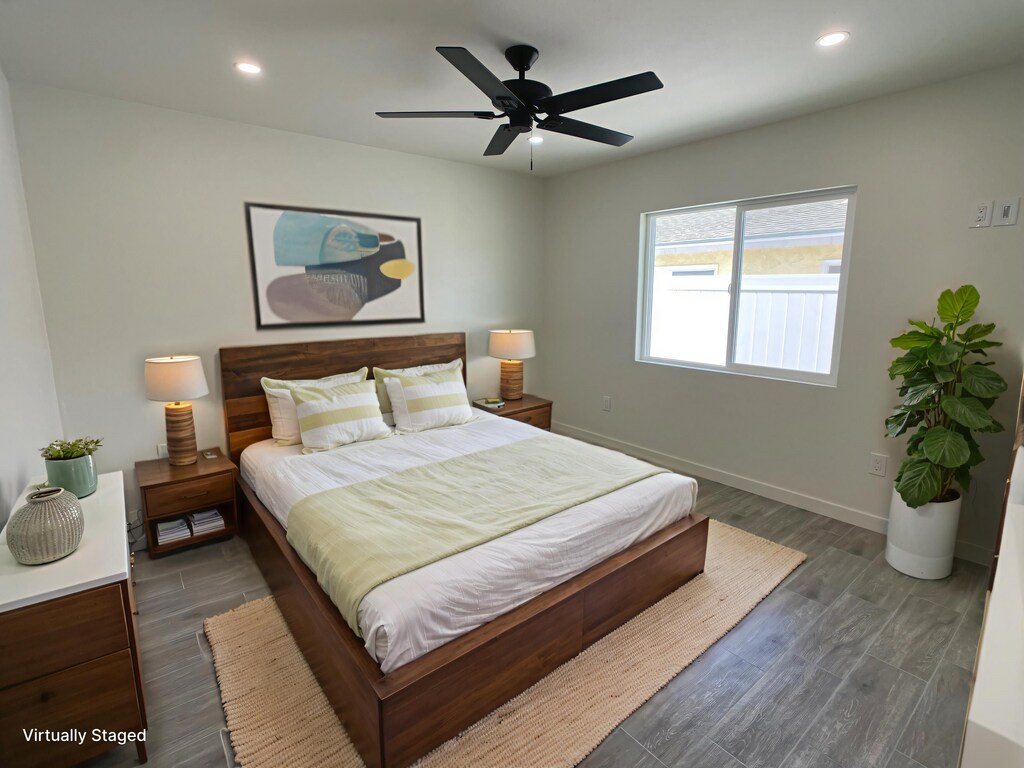 Brand NEW 2 bedroom 1 bathroom ADU in Port Hueneme, CA. Within walking distance to Naval Base VC and close to the Port of Hueneme. 1623 N 6th St offers 750 square feet of living space. The living room provides a comfortable area for relaxation, while the bedrooms are spacious and have mirrored closet doors, ceiling fans a dual pane windows. The bathroom features a large shower with custom tile and glass shower doors. All rooms have ceiling fans and the living room has a mini-split hvac system that is felt thru out the home. Washer & Dryer are included as well as refrigerator and stove. Custom white shaker kitchen cabinets with quarts counters and LED lighting. Good sized backyard with stamped concrete and a large front entry porch perfect for relaxing.