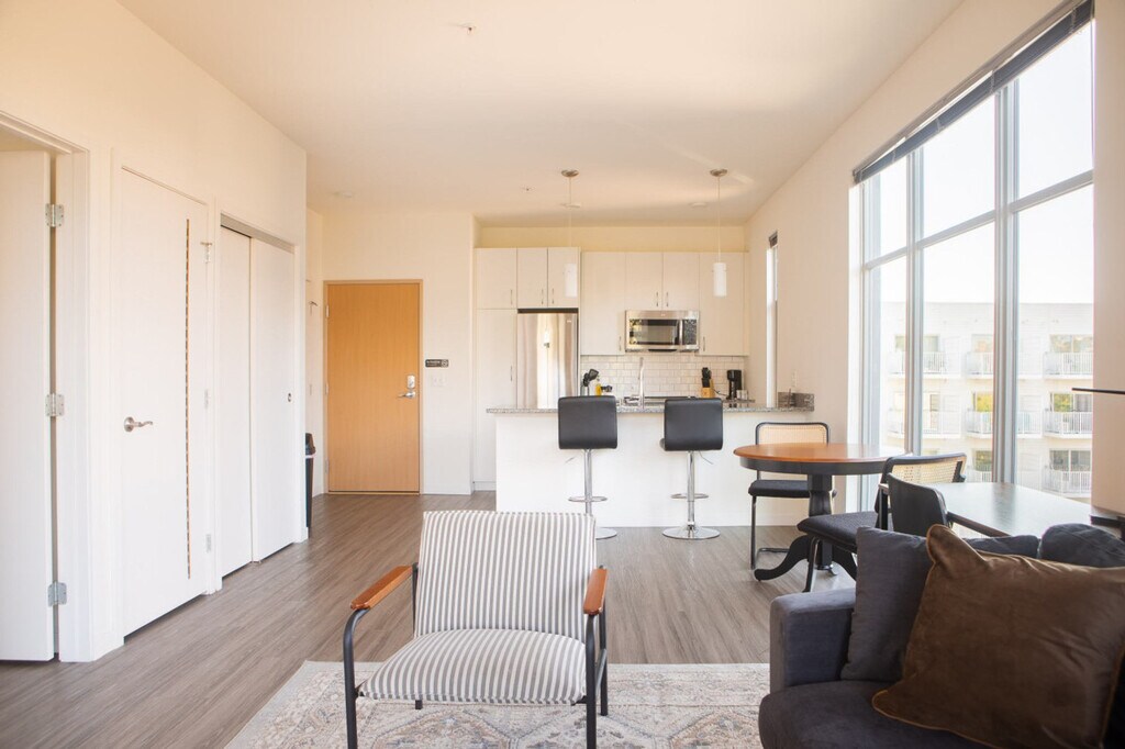 Feel at home in this apartment that comfortably sleeps two with a queen bed and has flexible seating areas so you can work or relax at your convenience. The living room sofa may serve as an additional sleeping area, however please note it does not have a pull-out bed. Amenities include a community room with a pool table, smart TV, self check-in, high-speed Wi-Fi, a dedicated workspace, a dining/work table, a private balcony, a walk-in closet, and in-unit laundry. Reserved parking is not included. Free daytime street parking is available throughout the neighborhood on Jackson St and on Pleasant St. Overnight street parking is restricted to specific streets, for example, allowed on Jackson St, Jefferson St, Pleasant St, and the west side of Water St, but not allowed on the east side of Water St. Overnight street parking requires a permit which you can request for free for up to 3 nights (or 4 nights when including Saturday which isn't enforced). If street parking is needed for 4+ nights, you can purchase a Night Parking Permit for $1-20 depending on duration. All within two blocks are cafes, breweries, a grocery store, a brunch restaurant, a beercade, the Riverwalk, and several restaurants and bars. No parties, gatherings, or commercial uses are allowed. Smoking is prohibited, and a $150 fee will be assessed for violations, with additional fees for remediation. Quiet time is after 10pm. Authorized guests only, and no booking on behalf of others. Guests must cover the cost to replace unreturned keys. Ages 21+ to book. Bookings by local guests are prohibited at this property. [SI]