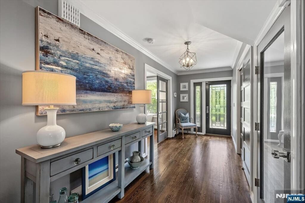 Step into this beautifully appointed 3-bedroom, 2-bathroom 1st floor unit, a decorator's dream, in highly sought-after Ridgewood. Perfectly blending modern elegance & functionality, this spacious home features a cozy living room with a fireplace, a formal dining room & a chef's kitchen equipped with stainless steel high-end appliances, a kitchen island, sleek quartz countertops. Hardwood floors flow throughout, custom blinds & central air for year-round comfort. The primary bedroom suite offers a generous WIC, FP & marble bathroom with a glass-enclosed shower. The 2nd BR boasts ample closet space & the 3rd BR can be used as a home office. In house laundry & ample storage in the lower level. Walk out to paved patio, shared use of yard, 1 garage space & 2 driveway spaces. Ideally located just 1 block from the train station, Ridgewood's vibrant shops and restaurants. Owner will maintain landscaping & snow removal. Tenants pay for all utilities, renter's insurance required. pets conditional. Credit check/good credit required.