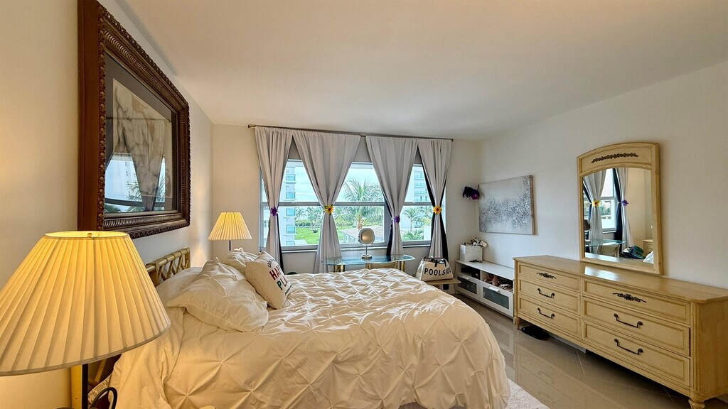 Tastefully furnished ANNUAL rental in Tiffany Gardens on the ocean side. Enjoy beach living,deeded & gated access to the beach. Ocean view from the balcony & primary bedroom,Intracoastal views from the living areas and kitchen. Fresh paint,new sofa,new refrigerator ready for a new tenant. Community pool,boccee ball,shuffle board,gated beach access & outdoor shower. Very nice grounds to enjoy. 1 parking space close to the building and guests parking. MLS ID F10516654