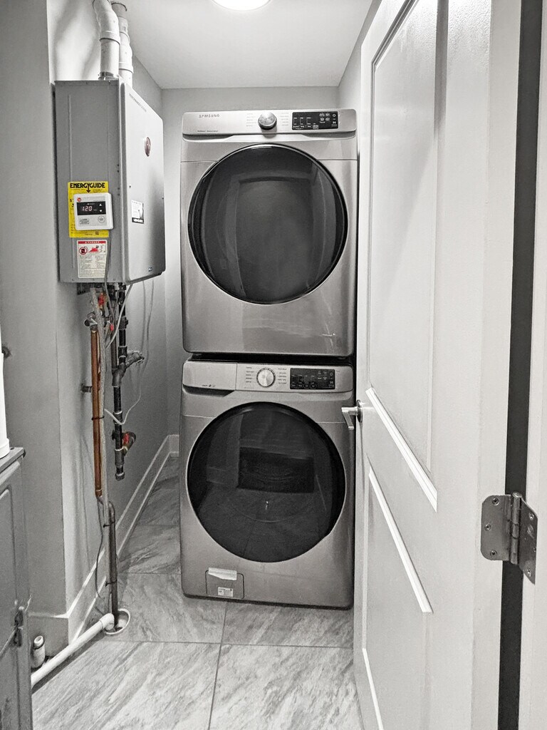 This condo-quality home features an open-concept layout with a striking 10-foot kitchen island, elegant cabinetry, quartz countertops, and a full stainless steel appliances. Oak floors flow seamlessly throughout. Enjoy two private balconies and exclusive rooftop access, perfect for relaxing or entertaining with skyline views. A designated parking spot is included in the rent, making city living both convenient and luxurious.