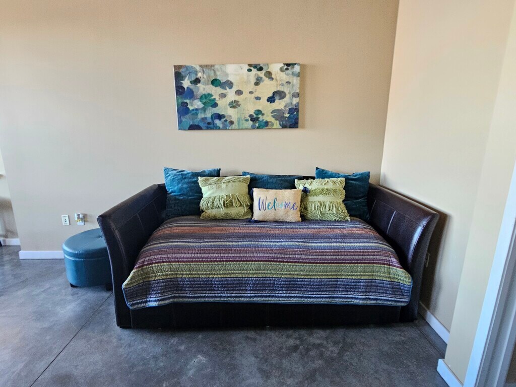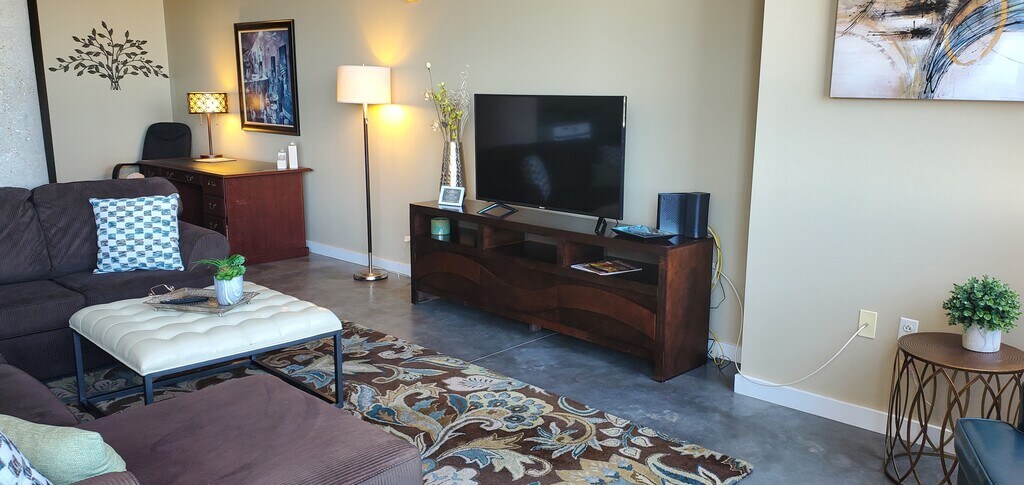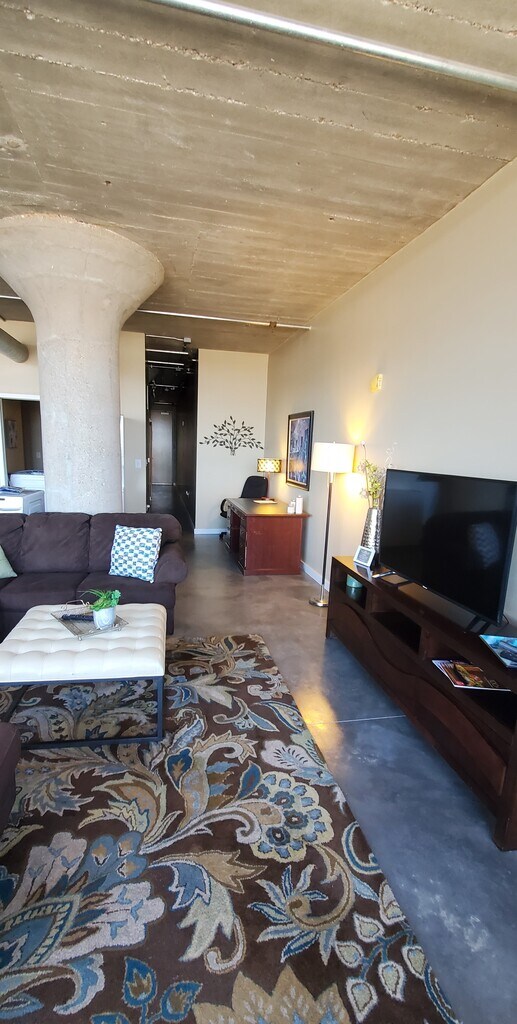 El loft del centro de la ciudad, bellamente decorado, con un dormitorio y un baño, lavadora y secadora de carga frontal, incluye un espacio de estacionamiento dentro del garaje seguro, acceso seguro al edificio con llavero para entrar y salir del edificio. El centro de la ciudad está cerca de todas las tiendas, restaurantes y tiendas de comestibles, y ofrece una ubicación conveniente con respecto a varios hospitales. El loft está repleto de todos los accesorios que necesitarás para sentirte como en casa. Ventanas de pared a pared en la sala de estar y área de juegos de diseño abierto, pisos de hormigón pulido, cocina con encimeras de granito, ventiladores de techo en la sala de estar y el dormitorio, sin ventanas en el dormitorio, lo que es ideal para dormir de día o para cualquiera que ame dormir en la oscuridad completa. ¡Le encantará hospedarse en este hotel convenientemente ubicado cerca de todas las actividades del Museo de la Ciudad, Windows at Washington, el Centro de Convenciones, el estadio Busch, la fila Restruarant y mucho más! Este lugar es ideal para profesionales médicos que viajan o para cualquier persona que viaje por trabajo. Se requiere un mínimo de 3 a 6 meses de arrendamiento. Se requiere una solicitud y una pantalla de 29,00.