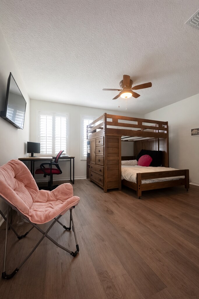 4BR / 2.5BA Move-In Ready Home with paved screened Patio Near Disney Welcome to this well-maintained and move-in-ready rental home located in the desirable Sawgrass Bay community. This spacious residence offers a bright and functional layout designed for comfortable everyday living. The first floor features an open living and dining area with neutral tones, tile flooring, abundant natural light, and a versatile den area—ideal for a home office, study, or additional living space. The kitchen offers ample cabinetry, generous counter space, and a clean, practical design. Upstairs, the private living areas include comfortable bedrooms with recently installed luxury vinyl plank flooring, well-maintained bathrooms finished in neutral colors, and a conveniently located laundry room. Enjoy outdoor living in the paved backyard with a screened enclosure, perfect for relaxing or dining outdoors with minimal maintenance. Located just minutes from Walt Disney World, with easy access to shopping, dining, and recreational activities. The Sawgrass Bay community offers a clubhouse and community pool, along with convenient access to major highways, schools, and Central Florida attractions—making this an excellent rental opportunity.