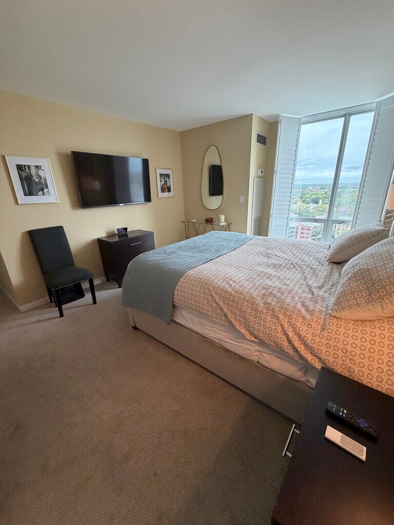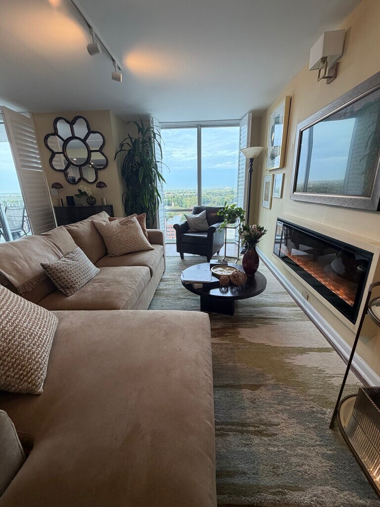 Experience luxury living in a sun-filled 2 bedroom, 2 bathroom condominium in downtown Evanston. Enjoy approximately 1,300 sq ft of sweeping floor-to-ceiling windows, kitchen with newly installed cabinets, dishwasher, and every amenity for contemporary comfort. This fully furnished home features new bedroom carpeting, high-end furnishings, pet-friendly policies, and private indoor parking. Peace of mind comes with a doorman, secure entry, central air and heat, and fast elevators for easy access. Step onto your balcony with grill and take in the stunning views, or unwind inside with an electric fireplace, reliable WiFi, The Frame TV, and Sonos speakers. The condo includes an in-unit washer/dryer, plantation shutters, walk-in closets, and ample storage space. Building amenities include an indoor pool, fitness center, rooftop terrace and sundeck with manicured landscaping, a residents library, and more. Perfectly located, this home puts you just steps from acclaimed restaurants, AMC movie theater, the future Northlight Theater, Metra and Davis L station (Purple Line), and CTA buses. Schedule your tour today and make this high-end retreat your new home—contemporary comfort at its best.