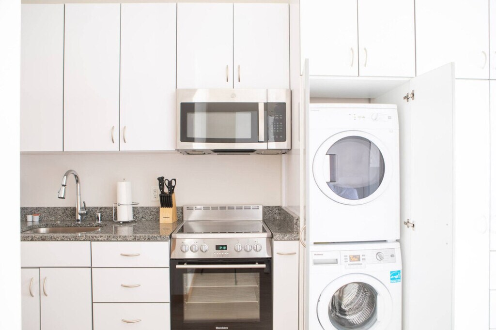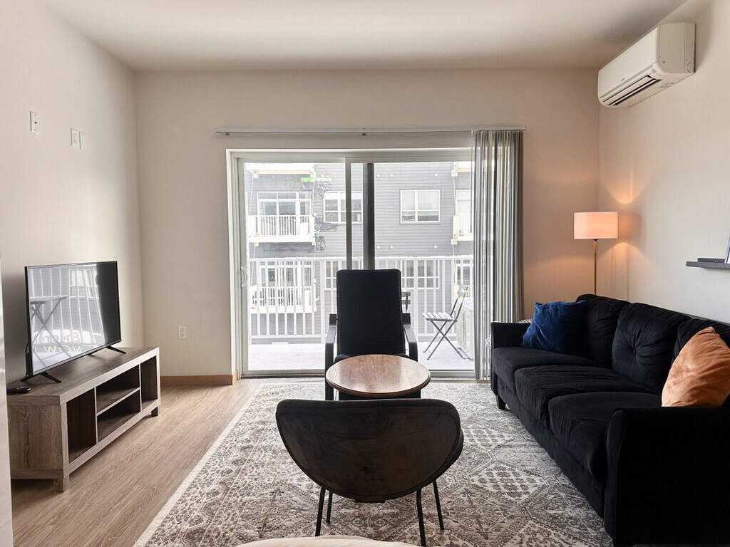 Feel at home in this comfortable apartment that comfortably sleeps two with a queen-size Murphy bed. The living room sofa may serve as an additional sleeping area, however please note it does not have a pull-out bed. Amenities include a 24-hour fitness center, smart TV, self check-in, high-speed Wi-Fi, a laptop-friendly workspace/dining table (when Murphy bed is not in use), a private balcony, and in-unit laundry. Reserved parking is not included. Free daytime street parking is available throughout the neighborhood on Jackson St and on Pleasant St. Overnight street parking is restricted to specific streets, for example, allowed on Jackson St, Jefferson St, Pleasant St, and the west side of Water St, but not allowed on the east side of Water St. Overnight street parking requires a permit which you can request for free up to 3 nights (or 4 nights when including Saturday which isn't enforced) by calling the city at on the day you'd like to start parking and requesting a Temporary Night Parking Permit. If street parking is needed for 4+ nights, you can purchase a Night Parking Permit for $1-20 depending on duration. All within two blocks are cafes, breweries, a grocery store, a brunch restaurant, a beercade, the Riverwalk, and several restaurants and bars. No smoking of any kind is allowed anywhere on the premises including outdoor spaces ($150 fine will be assessed and additional fees for remediation may apply). Quiet time is after 10pm. Guests must cover the cost to replace unreturned access devices such as keys, key cards, fobs, or parking passes. Bookings by local guests are prohibited at this property. Accommodations will be made for self check-in anytime after 1pm. All requests are subject to availability. [SI]