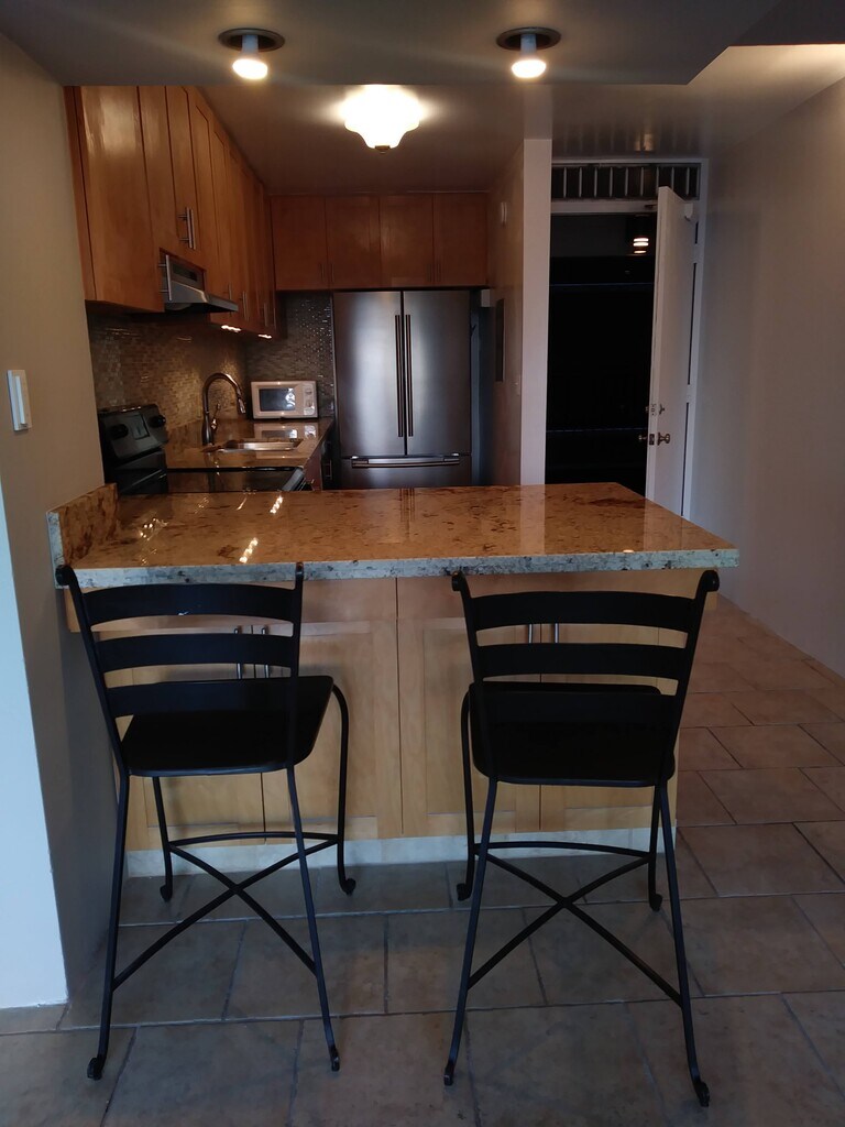 Marina Towers is an Upscale Boutique Condo Building at the edge of Waikiki. Two bedrooms, two baths shared shower. Newly remodeled Kitchen and bathrooms with granite counter tops and custom cabinets throughout. Stainless appliances, (Fridge, dishwasher and stove), washer and dryer in the unit, Italian ceramic tile floor. AC in the main bedroom with on suite bathroom. Light and Airy unit with great mountain and canal water view. Secured Gated entry way w/intercom with On site Manager. Salt water pool, BBQ area and gym area on site. Unit comes with one designated parking spot. Great location in Waikiki. The quiet area of Waikiki but close enough to walk to all the great bars and restaurants. Walk to World famous Waikiki beach and Ala Moana Mall in less than 3 blocks. Open House scheduled for April 18th and 19th. Available to Move in May 1. Active Duty Military Personnel welcome. Thanks for looking. No Pets allowed per Building Association unless certified. Please contact Donna with any questions.