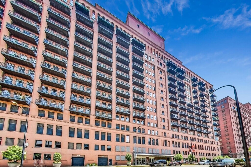 Spacious one-bedroom loft with an additional 9x13 bonus room! Updated kitchen with granite counters, stainless appliances, and garbage disposal. Large living/dining area with fireplace, floor-to-ceiling windows & balcony. Hardwood floors throughout. Office nook just off the living room, perfect for home office. Good size bedroom with a wall of closets. Dual-vanity natural stone bathroom with ample cabinet space. Full-size washer & dryer & long hallway of additional storage closets. Amenities include on-site management, a concierge, a fitness center, a bike room & more. Steps from the French Market/Ogilvie Transportation Center, blocks from Union Station, Riverwalk, restaurants, and entertainment.