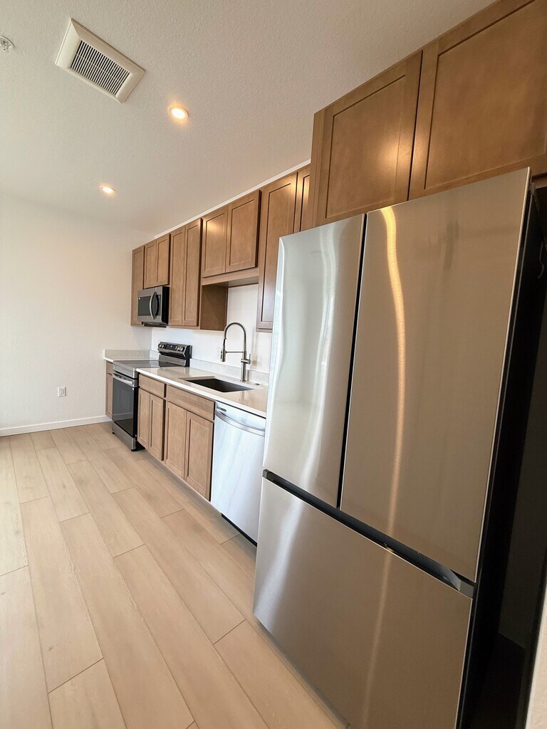 The Brayden, a beautifully designed two-bedroom, two-bathroom urban flat located on the first floor of Sloan’s Lake’s most exciting new community. With oversized windows facing west, a private balcony, and a layout made to maximize natural light, this home invites you to live brighter—inside and out. The Brayden offers a smart and spacious floor plan with two well-separated bedrooms for added privacy. The open-concept kitchen flows into the dining and living areas, making it easy to entertain or unwind. You’ll enjoy elevated finishes like Kohler fixtures, an included washer and dryer, and convenient surface parking just steps from your front door. This home features the Telluride design package—a warm and inviting mix of golden-tone cabinetry, light wood-style flooring, and clean, quartz-inspired countertops. It’s a bold yet approachable aesthetic that adds richness to your everyday surroundings. Whether you’re strolling to Sloan’s Lake, biking the nearby trails, or heading out for drinks and dining in Edgewater, this home puts you at the center of it all—with the low-maintenance comfort to match. Moving to Colorado and house-hunting? Skip the year-long lease and land softly with our flexible-term rental options! Perfect for those in-betweeners transferring to the Centennial State or searching for their dream home through our exclusive Tenant-Buyer Program. Enjoy the flexibility of a negotiable lease while you explore Colorado's neighborhoods and find your perfect fit. Just looking to rent? We also offer one-year and longer lease options for non-Tenant-Buyer Program participants. Contact us today to learn more about our Tenant-Buyer Program, long-term rental options, and available properties! Monthly admin fee equivalent to 1% of current rental rate. $250 one-time move in fee. 1) Applicant has the right to provide Brokerage with a Portable Tenant Screening Report (PTSR) that is not more than 30 days old, as defined in § 38-12-902(2.5), Colorado Revised Statutes; and 2) if Applicant provides Brokerage with a PTSR, Brokerage is prohibited from: a) charging Applicant a rental application fee; or b) charging Applicant a fee for Brokerage to access or use the PTSR Central A/C Central Ac Central Air Central Heating Dryer Forced Air Forced Air Heating Furnace Washer Washer/Dryer