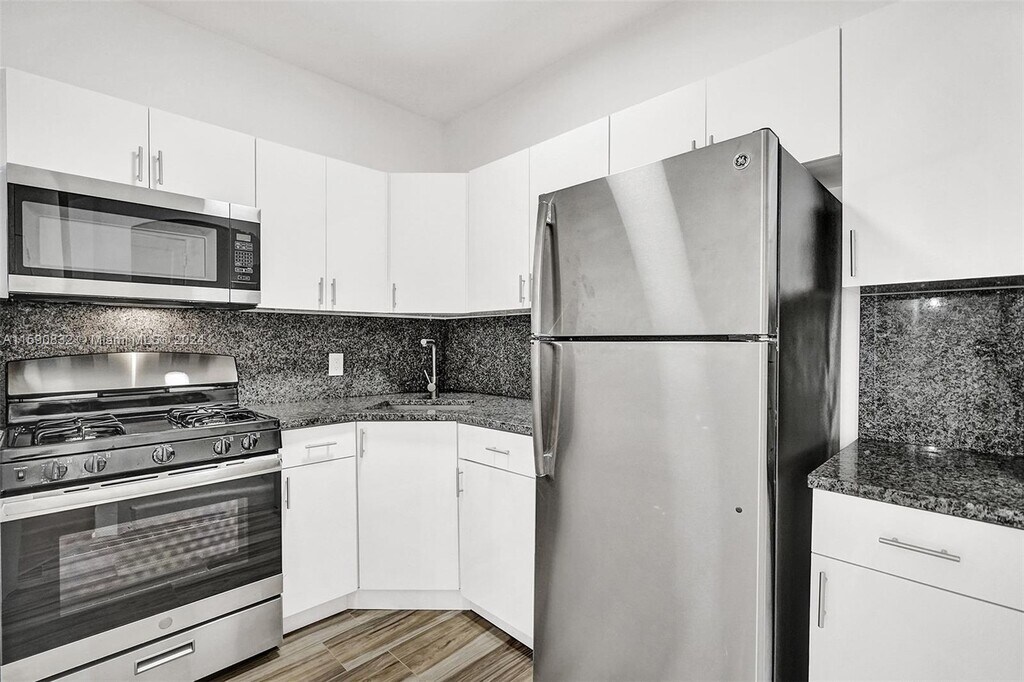 Charming and beautifully renovated large studio. This unit features beautiful natural hardwood floors, tiled kitchen, granite counter tops and all brand new appliances. This bright and luminous unit has a brand new energy efficient central air conditioner. All new hurricane impact windows and doors throughout the entire property for a quiet and enjoyable lifestyle. Building is safe with surveillance camera system and access control by intercom. ALL UTILITIES ARE INCLUDED IN THE RENTAL PRICE. Located in the heart of Hollywood, FL., just minutes away from downtown's vibrant attractions Surrounded by a myriad of