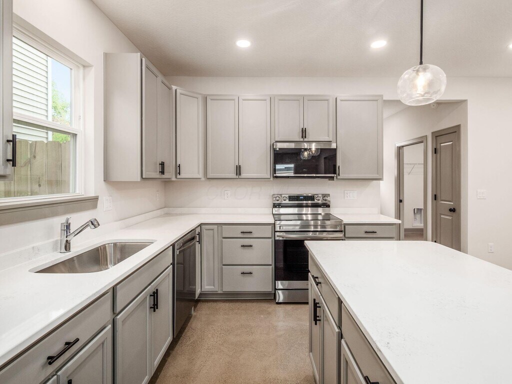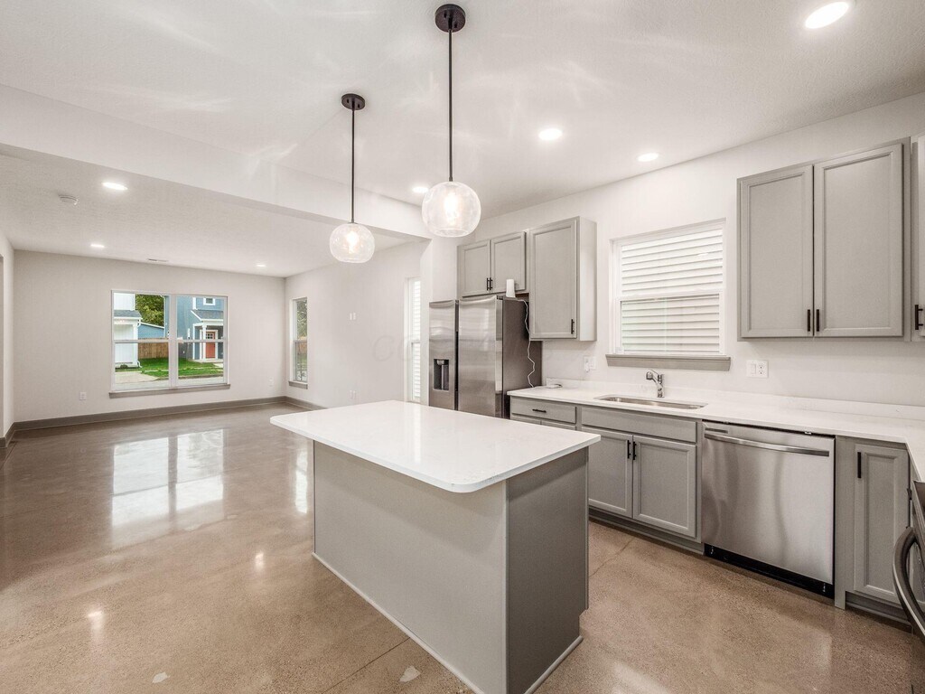 Now available! Introducing a stunning new build in Columbus, OH: a 3-bedroom, 2.5-bathroom home in the vibrant Franklinton neighborhood. This home boasts a host of modern amenities, including a dishwasher, stainless steel appliances, and a micro-hood in the kitchen. The quartz countertops and brand new LVP flooring add a touch of elegance to the space. The home features vaulted ceilings and 9 ft ceilings throughout, creating a spacious and airy atmosphere. The bedrooms are generously sized with large closets for ample storage. The home also includes 2 full bathrooms and a convenient 1st floor 1/2 bathroom. The covered front porch and 6 ft privacy fence provide a perfect setting for outdoor relaxation. The 2 car garage comes with overhead door openers, and off-street parking is also available. The home is equipped with central air, LED lighting, and energy-efficient dual pane vinyl windows for comfort and sustainability. Washer and dryer connections and a dedicated laundry room add to the convenience. This home is a perfect blend of style, comfort, and functionality. Don't miss out on this gem in the heart of Columbus! Visit to learn more or call our office at to schedule a tour! This home is priced above the Section 8 threshold.