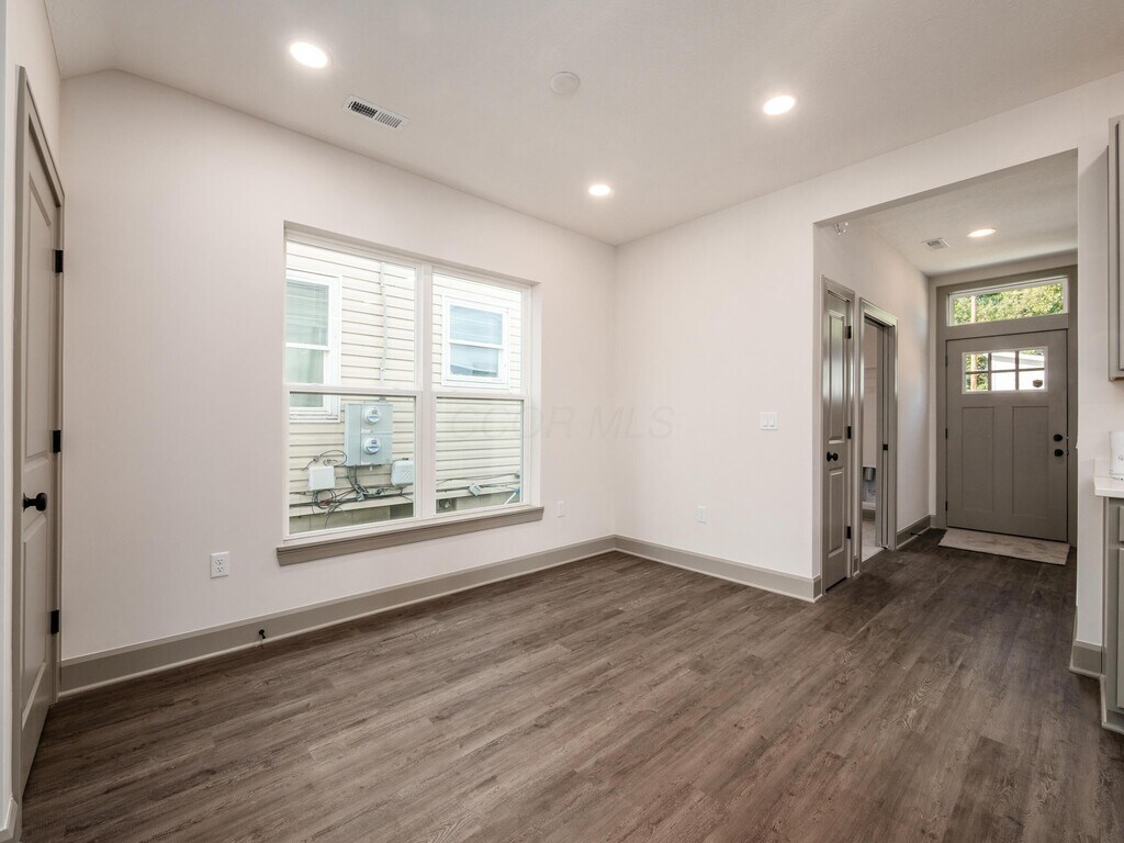 Just Completed! 3 Bedroom Franklinton New Build Now Available! Welcome to your dream home,newly completed in the vibrant neighborhood of Franklinton,just outside of downtown Columbus! This 3-bedroom,2.5-bathroom new build is designed with modern living in mind. The home boasts a range of high-quality amenities including stainless steel appliances,quartz countertops,and brand new LVP flooring,which all add a touch of elegance to the space. The home features vaulted ceilings and 9 ft ceilings throughout,creating a spacious and airy atmosphere. The bedrooms are generously sized with large closets for ample storage. The house also includes two full bathrooms and a convenient 1st floor 1/2 bathroom. The property comes with a 2-car garage equipped with overhead door openers,and off-street parking is also available. The home is fitted with energy-efficient dual pane vinyl windows and LED lighting,ensuring a bright and eco-friendly living environment. The central air system ensures comfort in all seasons. The large patio and covered front porch provide perfect spaces for outdoor relaxation,while the 6 ft privacy fence ensures your peace and privacy. The home also includes a laundry room with washer and dryer connections. This new build in Franklinton is the epitome of modern,comfortable living.