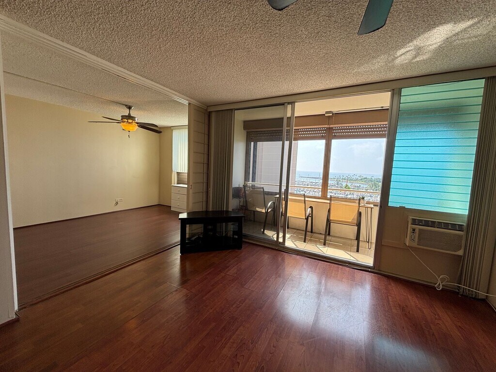 Convenience awaits at the Harbor View Plaza condominium, at the entrance to Waikiki. Located on the 2nd floor, this 2 bedroom 1.5 bath comes with one assigned parking stall. Enjoy views of the Ala Wai Boat Harbor and Ala Moana Beach Park from your lanai and conveniently located near Ala Moana Shopping Center and Ala Moana Beach Park. Along the bus route and just minutes away from several dining, shopping, and entertainment options in the Ala Moana, Waikiki, and Kakaako area. This unit is newly painted with a newly installed dishwasher, living room window AC, living room ceiling fan, kitchen light fixtures and bathroom mirrors. Amenities include a swimming pool and BBQ area. Rent includes water, sewer, trash, basic cable, and internet. Tenants are responsible for electricity. No pets. No smoking. Renter's Insurance required. Long-term lease only.