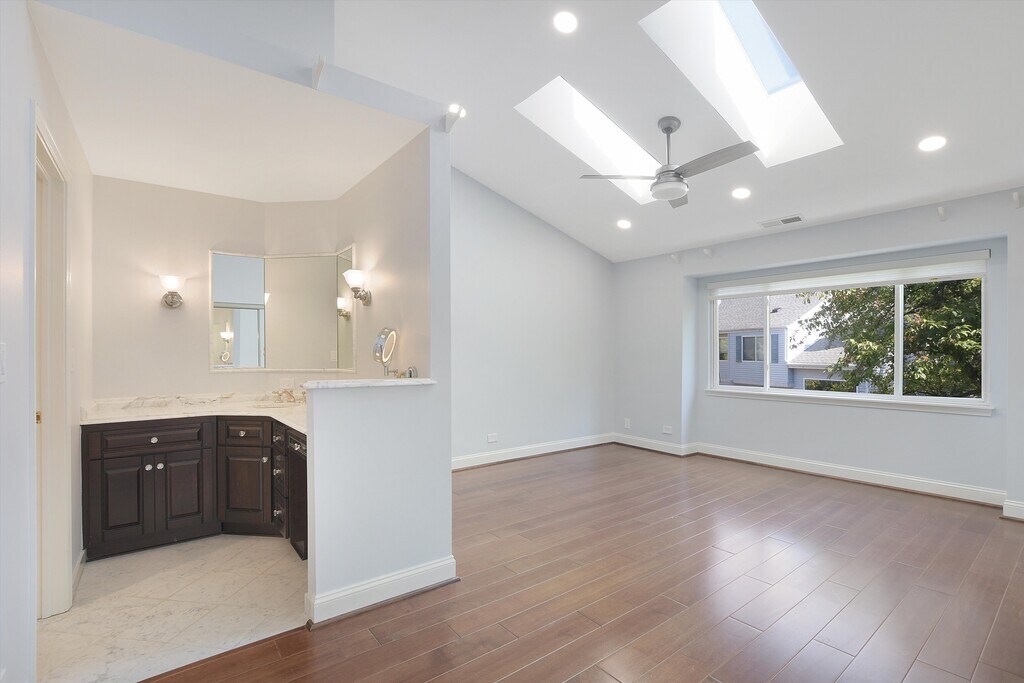 For rent 2 story lovely #Schaumburg IL townhouse in Red Rock subdivision. Available for 18 month only. This townhouse has Engineered hardwood floors throughout, decorated in neutral colors, 9' ceilings, and upgrades everywhere! Kitchen with granite counters, custom cabinetry, under cabinet lighting, lit cabinets on top, and breakfast bar. Stainless steel appliances with custom paneled fridge & dishwasher for a sleek design. The Living Room has a gas fireplace, built-in bookshelves with lighting, & surround sound speakers. Updated, gorgeous powder room on the first floor. The Luxurious Master Suite has double closets, 3 skylights, vaulted ceiling, Primary Bath with custom cabinetry and Marble floors, counters, and shower. Fully Remodeled Hall Bathroom, 2nd Floor Laundry...full size Washer & Dryer .~ Epoxy Floor in Garage ~ Concrete patio with brick extension. Enjoy this amazing location just blocks from parks, shopping, restaurants, & public transportation! This is a first class home and it could be yours! No pets please. Tenants to provide rental insurance. Applicants over 18 years old must have good credit Fico credit score over 700+ and must have positive rental history. Lease to be finished in June 30th 2027. Exclusively presented by Svetlana Vidovic REM.