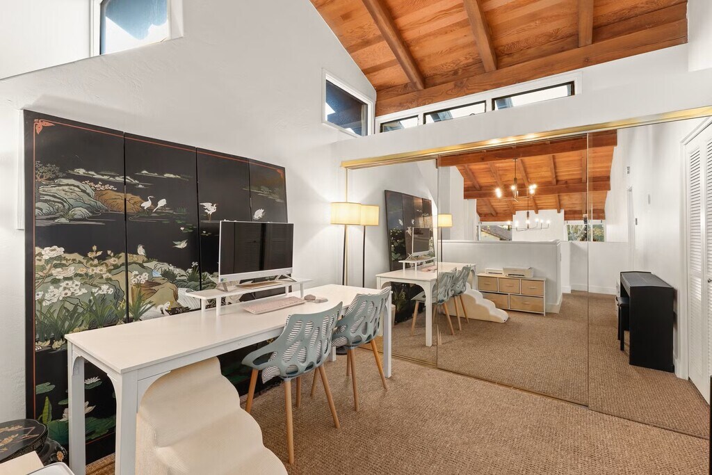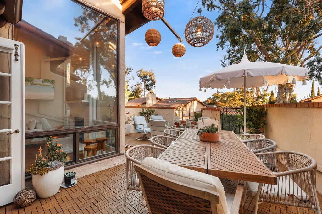 Nestled in the heart of the village,this beautifully appointed split-level home offers an exceptional blend of comfort and convenience. Featuring BRAND NEW carpet and soaring 19-foot vaulted wood ceilings,the spacious interior includes three large bedrooms,a versatile loft/office,and generous closet space. The updated kitchen boasts exquisite granite countertops,maple cabinetry,and top-of-the-line stainless steel appliances. Multiple patio areas provide the perfect setting for indoor-outdoor living and include access to the complex's grassy open space with fountain. Amenities include full-sized stacked washer and dryer,laundry/mud room,patio with BBQ,a one-car garage with ample storage and a private carport with Tesla charger. Located just a short walk from village restaurants,shops,library,and the renowned Roger Rowe School. A rare opportunity to experience the best of RSF living. Landlord prefers a 12+ month lease with current furniture remaining but will consider other offers. Pets are welcome with Landlord approval. Tenant pays for SDGE and cable/internet. Landlord pays for water and trash. MLS# 250046175