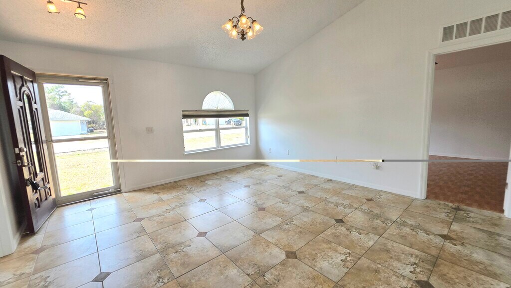Freshly painted and move-in ready, this 4-bedroom, 2-bath, 2-car garage home offers a spacious split floorplan with tile throughout—no carpet. The open living and dining areas easily accommodate large furniture, and the oversized kitchen features two pantries, dual sinks, a large island, water filtration system, and abundant lighting. Three similarly sized bedrooms share a remodeled hall bath with updated tile shower and vanity. The primary suite is filled with natural light and includes dual closets, a garden tub, separate shower, water closet, and two brand-new vanities with mirrors and sinks. Washer and dryer are included. Enjoy the fully enclosed lanai that opens to a large concrete patio—perfect for entertaining, BBQs, and relaxing. The exterior has been repainted, and the fully fenced yard includes two fruit trees, a storage shed, water softener system, and filtered water inside. No HOA. Schedule your showing today.
