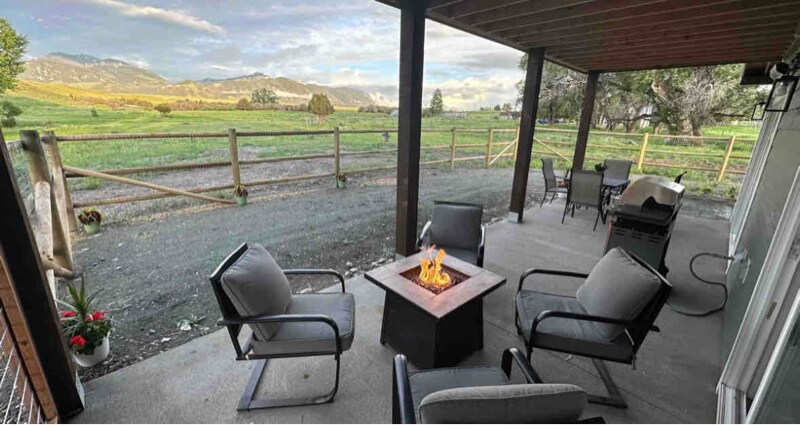 Property Id: 1280223 Just minutes from downtown Ennis, local attractions, outdoor activities, and great restaurants, this charming 1-bedroom, 1-bath unit blends comfort and convenience. Inside, you'll find high-speed Starlink Wi-Fi, a fully equipped kitchen, and a plush hybrid queen bed, plus a sofa bed for guests. A washer and dryer are conveniently located on-site. Step outside to your large covered patio, complete with an outdoor fireplace, comfortable seating, a dining table, and a gas BBQ grillperfect for relaxing or entertaining. This first-floor unit includes private covered parking, a front porch with gas grill and chairs, and dedicated high-speed Wi-Fi ideal for remote work and video calls. Utilities are a flat $100 per month.