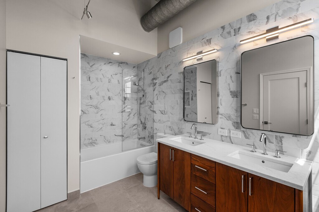 Beautiful, spacious, open concept loft in Chicago’s West Loop! This stunning brick and concrete loft has been fully rennovated into a 2 bedroom, 2 bathroom unit. One garage parking spot is INCLUDED in the rent! Wide plank wood flooring has been newly installed throughout, along with heated flooring along the windows. A new gas fireplace enhances the living space. The unit features east and south exposure, offering sweeping downtown views to the east, with newly installed motorized window shades. The kitchen includes custom underlit cabinetry and high end appliances, including a Wolf range and oven and a Fisher and Paykel refrigerator. The primary suite has ample storage with a walk in closet, additional closets, and the primary bathroom features a double vanity. New dimmable lighting has been installed throughout the entire home. In Unit Washer and Dryer. The building’s rooftop has plenty of seating and grills overlooking the eastern Chicago skyline. The Ashland Green and Pink line stop is less than a 10 minute walk, Union Park is a 5 minute walk, and Mariano’s, Whole Foods, and Target are all less than a 5 minute drive away. Property Management firm requires mandatory Resident Benefits Package for an additional $40.00 per month; includes renters insurance, positive credit reporting for on-time rental payments, identity fraud protection and more.