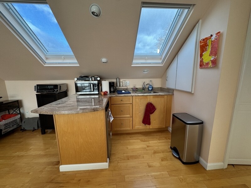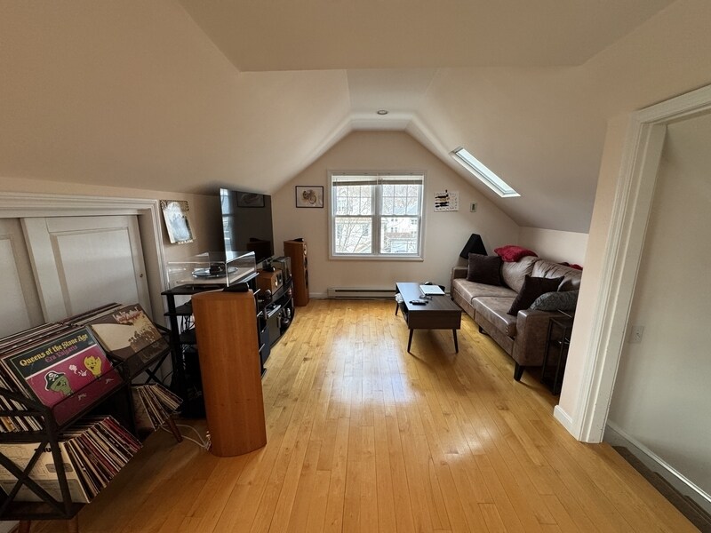 AVAILABLE JANUARY 1ST! & ALL UTILITIES INCLUDED! Meticulously maintained top level 1 bed/1 bath unit in a multi-family home in the Harvard Lawn neighborhood of Belmont. Soaked in natural light from numerous skylights the beautiful hardwood floors gleam in this open concept unit. One off street parking spot, private balcony and full-size washer and dryer in the basement. Excellent location close to Strawberry Hill, Fresh Pond Reservation, Alewife, Harvard Square and more!