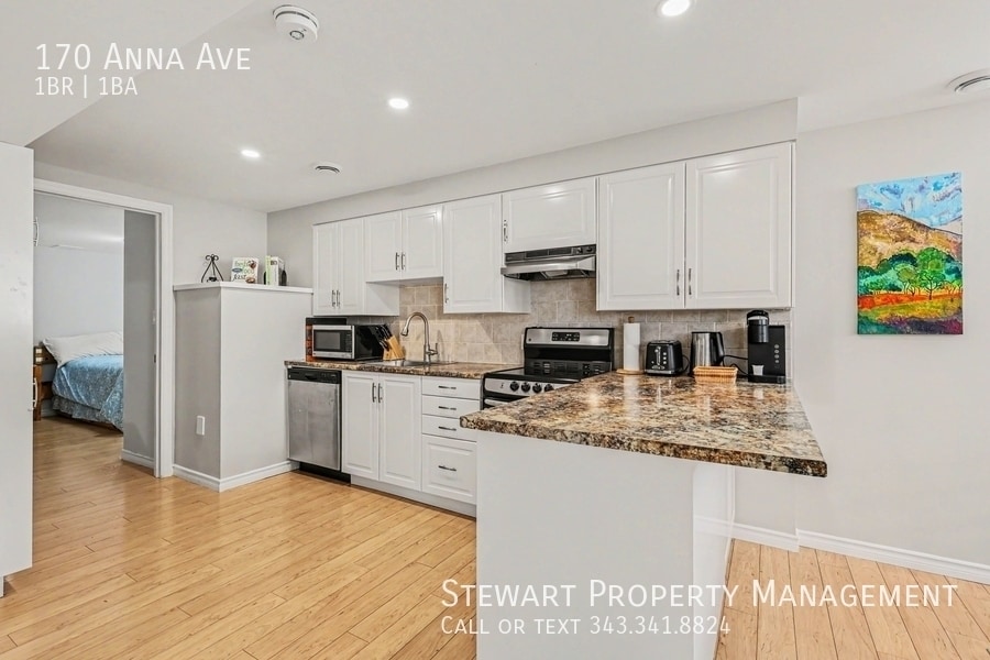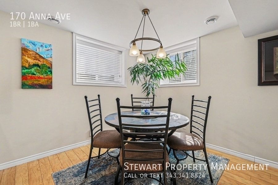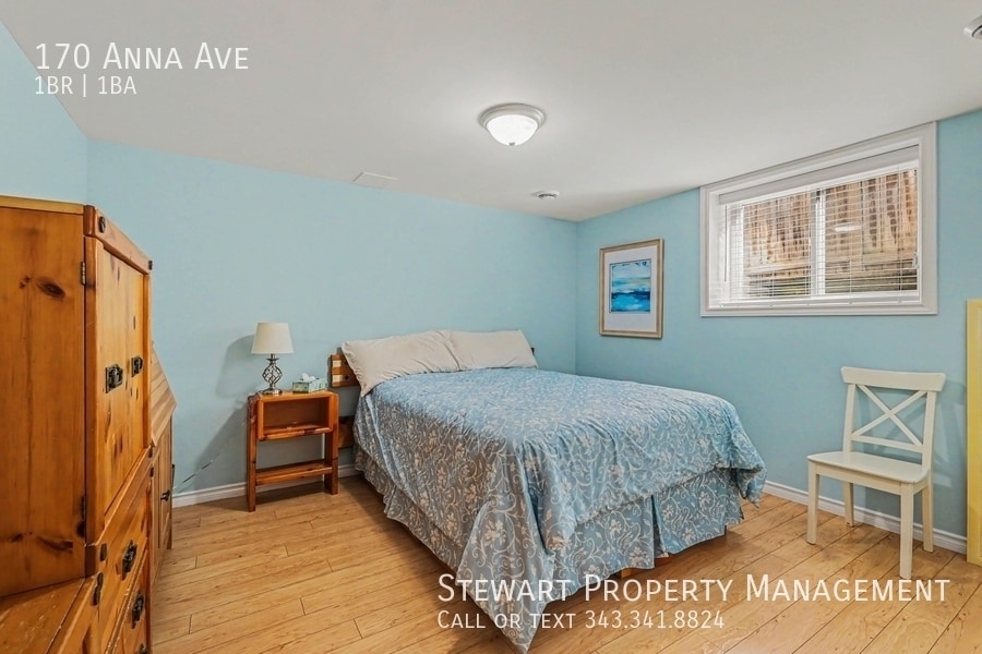 AVAILABLE NOW!! LOWER UNIT - FURNISHED OPTION AVAILABLE AT EXTRA COST - $1875 Welcome to 170 Anna Avenue – Lower Unit. This 1 bedroom, 1 bathroom basement apartment offers a bright and comfortable living space in a well-maintained home. Built with an apartment in mind, the unit benefits from large south-facing windows that bring in plenty of natural light, creating a warm and inviting atmosphere. Conveniently located in a prime area, the property is close to hospitals, shopping, walking paths, and provides easy highway access, with downtown Ottawa only a short drive away. The apartment comes with a fully furnished option and includes everything needed for comfortable living, including a fully equipped kitchen, bedding, and towels. Situated in a quiet and safe neighbourhood, it is ideal for professionals seeking convenience and comfort. Please note: This is a non-smoking unit. INCLUDED IN RENT - 1 parking space, snow removal contract, all utilitiess, Wi-Fi, laundry facilities, electric fireplace, and shared use of backyard.