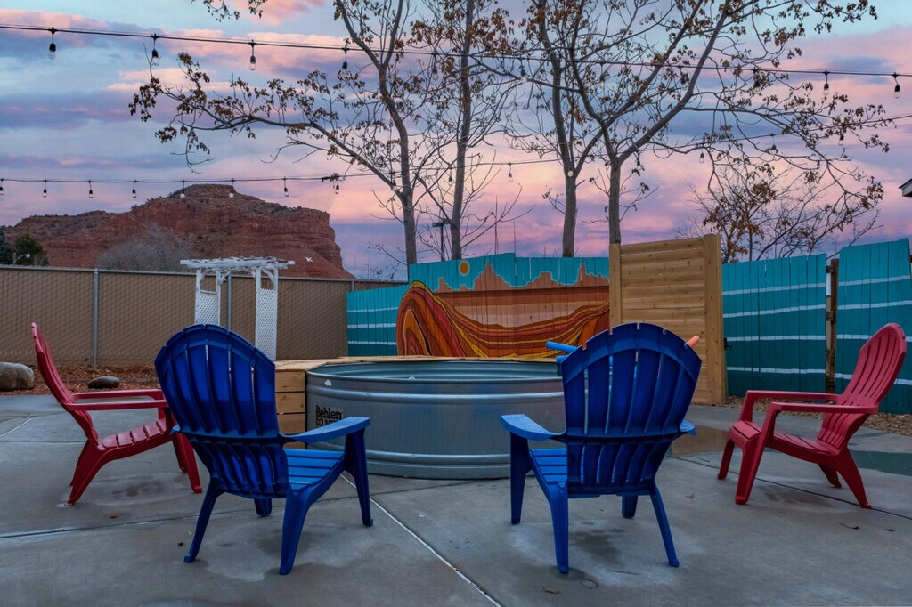 Feel at home in this comfortable and budget-friendly 2-bedroom apartment near Zion National Park, perfect for travelers who value location, space, and practicality. Nestled just two blocks from Kanab's Main Street, this apartment puts you in the heart of Kanab's small-town charm. Think relaxed, practical, and budget-friendly, with a charming tiny-home vibe, perfect for short-term, monthly, or long-term stays. This historic property is perfect for adventure seekers who enjoy shared community amenities while having their own private living and sleeping space. The fully stocked kitchen is designed with families and longer stays in mind and features appliances, cookware, utensils, and everything you need to prepare meals at home. A dining table seating four makes it easy to enjoy breakfast or unwind with dinner. Guests can enjoy shared exterior spaces, including a hot tub, cowboy pool (seasonal), dog area, BBQ, hammocks, fire pit, covered pavilion with seating, lounge chairs/couches, cornhole and horseshoes. Free laundry is available on a first come basis. This is a charming, budget-friendly space, not a luxury property. An EV charger is within a 5-minute walk. Pets are welcome with a fee of $10 per pet per day. Step outside your door to discover local cafes, unique shops, and restaurants. This apartment is perfectly situated for day trips to Zion National Park (30 miles), Bryce Canyon National Park (76 miles), Grand Staircase-Escalante (15 miles), Peek-a-Boo & Spooky Slot Canyons (12 miles), Best Friends Animal Sanctuary (7 miles), Coral Pink Sand Dunes State Park (20 miles), Toadstool Hoodoos Trailhead – 45 miles and Grand Staircase-Escalante National Monument – 15 miles. The apartment is part of a historic property with thin walls, and you may occasionally hear other guests outside. A $200 per day fee will be assessed for each day of the reservation if it is found that guests have been smoking or vaping on the premises. For unauthorized pets, a $250 fee will be assessed. Quiet hours begin at 10:00 PM each night and continue until sunrise. A $500 fee will be assessed if the cleaners have to move furniture to reset the property for the next guest. One bedroom includes a dedicated workspace, perfect for remote work or trip planning. This historic building is full of character, and a bit of wear and tear is part of its charm in an authentic desert environment. Walls are thin, and you may occasionally hear other guests outside. Being in the desert means you may spot a few local critters from time to time. [SI]