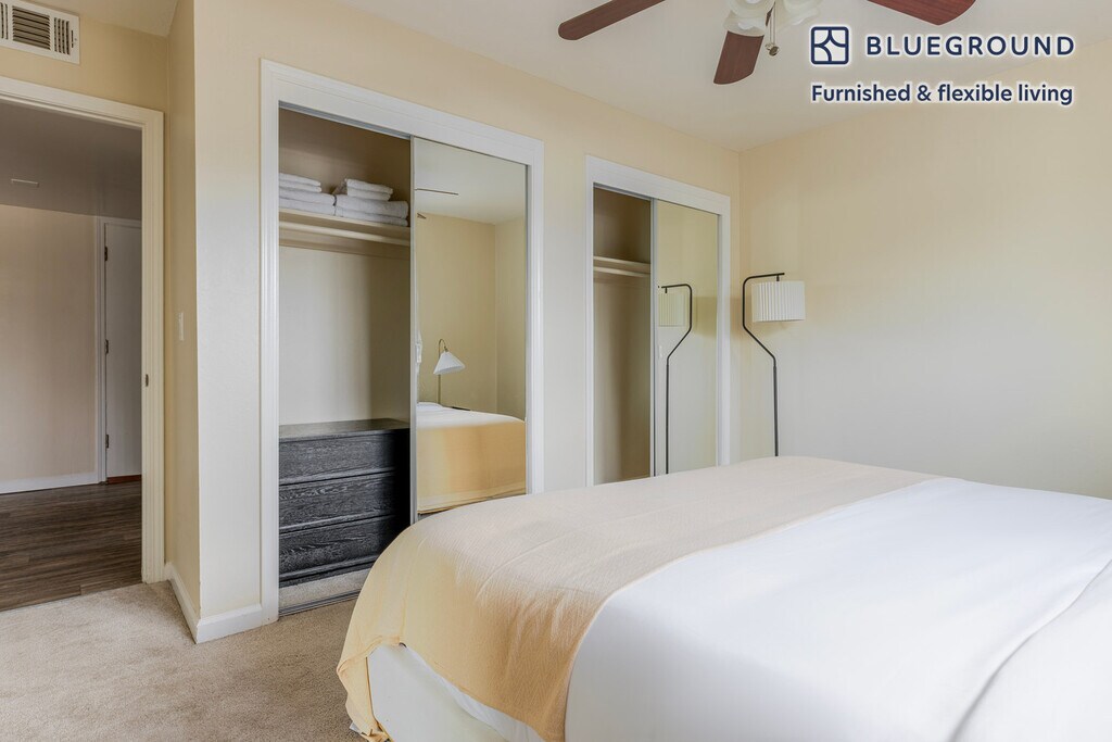 Show up and start living from day one in Sunnyvale with this sophisticated one bedroom Blueground apartment. You’ll love coming home to this thoughtfully furnished, beautifully designed, and fully equipped Sunnyvale home. (ID #SFO2031) The advertised rate of $2,630/month is the lowest available price, based on a 6 month(s) and 4 day(s) stay with a move-in date of August 16, 2026. If you’re looking for a 1-year stay, the rate is $2,700/month. Rates vary depending on the duration of stay, season, and other parameters. For exact pricing and additional pricing components, please visit our website and enter your desired move-in and move-out dates. The rate is applicable when billed upfront; it can be higher if billed in multiple payments. Brokers are welcome to reach out. Were you looking for an unfurnished lease? Try Blueground instead and upgrade from unfurnished to furnished living: - Furnished at rates comparable to unfurnished - No setup or furniture costs - save thousands - Move-in ready - save time, just bring your suitcase Designed with you in mind As with any Blueground apartment, you’ll find a thoughtfully designed space complete with beautiful furniture and a fully equipped kitchen in this one bedroom property. And, thanks to our superior quality mattresses, luxury linens, and towels, you can relax knowing you’ll always feel comfortably at home. When you’re ready for some fun, you can take in the Sunnyvale vibes or bring the entertainment to you with the premium wireless speaker or smart TV. Sleeping arrangements King Bed, 70.8in/180cm Amenities Building amenities unique to this one bedroom apartment include an on-site: - Dryer in building - Swimming pool - Washing machine in building - Parking - Pets allowed Arrival and ongoing support The entire apartment is yours to enjoy! Throughout your stay, you’ll have access to our Client Experience team through the Blueground App. You can schedule additional cleanings, submit maintenance requests, and view our neighborhood recommendations with just a few taps. We’ll share all details upon confirmation of your stay. Ideally Located This furnished home is in the heart of the South Bay's Sunnyvale, with headquarters to many tech companies. Situated to the north of Santa Clara and to the south of Mountain View, Sunnyvale is a mid-sized city with nearly 150,000 residents. The median age is 35 years old, with a male to female ratio of 50/50. Sunnyvale is best known for its downtown on Murphy Avenue, which still retains its small-town feel. There are two golf courses at the Sunnyvale Golf Course, including an 18-hole championship course. Other things to note Building amenities may have an extra cost. This Blueground apartment has flexible lease options, allowing you to book it for one month, a year, or more. Pets are welcome, though weight limits and breed restrictions apply and may incur fees. Parking is offered based on availability and is subject to a fee. Please keep in mind that this is a walk up building. We take great pride in ensuring every photo displayed is shot in our own units with our actual furnishings. That said, we regularly refresh our decor and furniture arrangement, which may differ from what’s pictured. [SI]