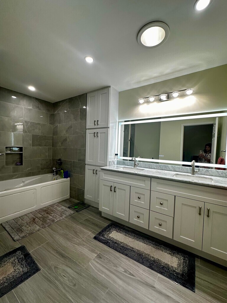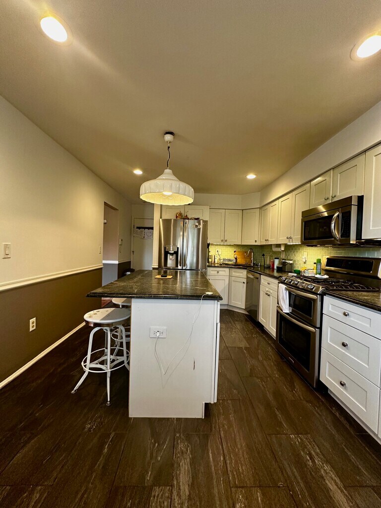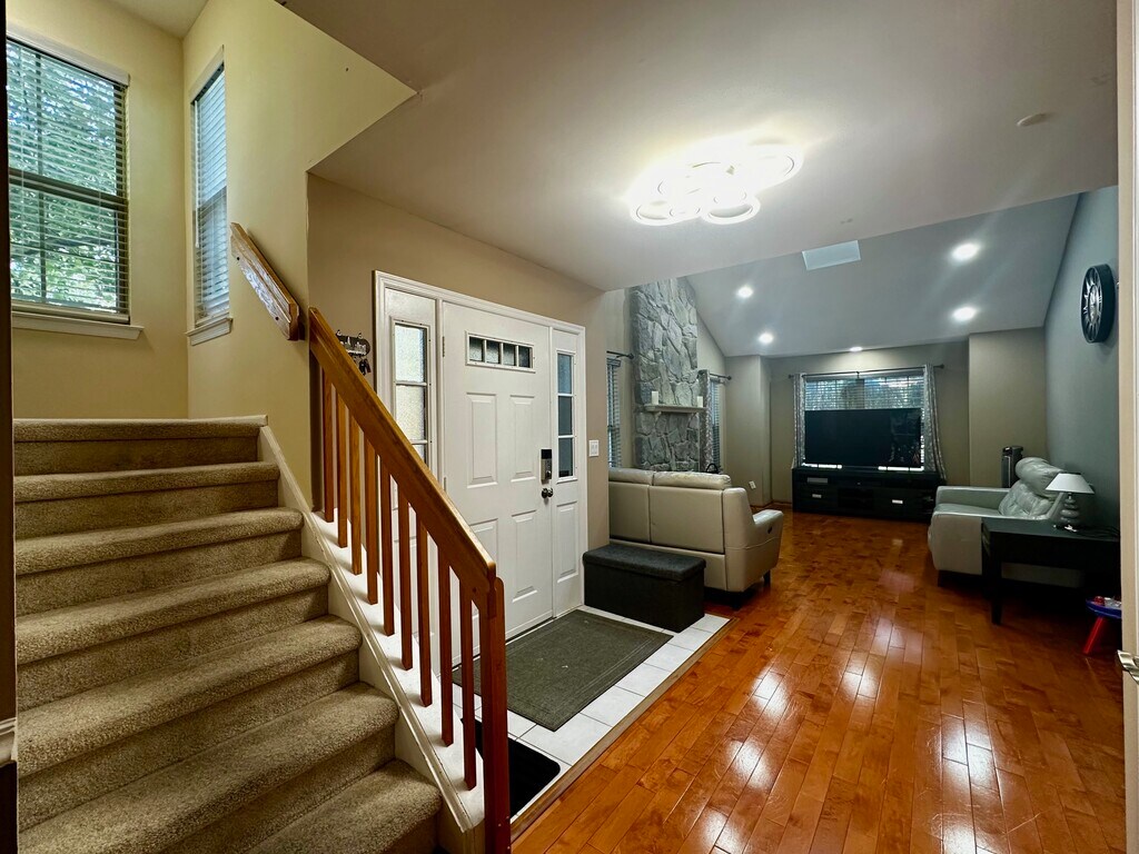 Stunning end-unit townhome nestled in the highly sought-after Renaissance neighborhood, offering 3 spacious bedrooms, 2.5 baths, an attached garage, and a fully finished basement. Thoughtfully updated by the owner in recent years, this inviting home opens to a welcoming foyer leading into a bright and airy living area enhanced by recessed lighting, natural skylights, a charming stone-surround fireplace, and gleaming hardwood floors. The separate dining room exudes elegance with detailed molding, recessed lighting, and hardwood flooring—ideal for entertaining family and friends. The beautifully remodeled kitchen features a center island, stylish backsplash, abundant cabinetry including extra storage near the windows, granite countertops, and durable ceramic tile flooring. A refreshed first-floor powder room offers a new vanity, toilet, and tasteful flooring. Upstairs, the generous master bedroom boasts hardwood floors, recessed lighting, a skylight, and a walk-in closet with a custom shelving organizer. The recently renovated master bath impresses with elegant tilework, new cabinetry, a luxurious soaking tub, and a separate standing shower. Another spacious bedroom is outfitted with durable vinyl flooring, a custom closet for optimal organization, and updated lighting with a ceiling fan. Conveniently located on the second floor, the laundry area includes a washer and dryer just four years old. The stylish, fully updated main bath features a standing shower, new vanity, elegant tilework, and modern fixtures. Additional flexible space on the second floor is perfect for a small home office or study nook. The third floor hosts a large bedroom filled with natural light from a big window, a huge walk-in closet with a custom organizer, hardwood flooring, and updated lighting with ceiling fans. Step outside to enjoy a lovely deck overlooking the backyard play area, beautifully maintained by the association. The finished basement offers versatile space with durable vinyl flooring—ideal for an entertainment center, playroom, home office, or more. Additional highlights include ceiling fans and lighting in all bedrooms, a washer and dryer just four years old, a one-year-old refrigerator, and a 4-year-old HVAC system. The attached garage is equipped with an EV charging station for modern convenience. Ideally located directly across from the community swimming pool, with easy access to Routes 130 and 1. Nearby shopping such as ShopRite, dining options, and a quick 10-minute drive to Jersey Avenue or New Brunswick train stations make commuting to New York City effortless.