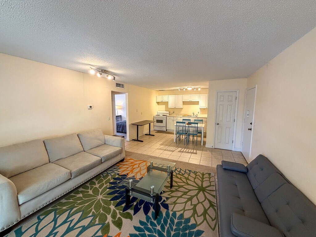 Walk to the VA and Shands - Move-in ready furnished 2/1 condo close to UF and Butler Plaza - 2 spacious bedrooms and 1 full bathroom - Tile floor in the kitchen and bathroom and carpet in the living room and bedrooms - On multiple bus routes to UF - Community features include a swimming pool. - No washer/dryer in the unit, but access to a paid laundry facility - Parking included in the rental rate The property is furnished with the following items: Common area: 2 sofas, 1 arm chair, coffee table, area rug, dinette w/ chairs, desk and a standing lamp Bedrooms: 2 beds, 2 desks, 2 dressers, 2 arm chairs, 2 area rugs and 2 end tables In order to reserve the property, the following would be required: 1) Each tenant and co-signer fill out and submit a credit/criminal background check application. ($60/person) 2) The security deposit equal to $600 3) A redecoration fee equal to $600 4) An air filter fee equal to $10/month for the length of the lease due at lease signing 5) A signed lease and parental guarantor or other approved guarantor to co-sign the lease unless the tenant has adequate monthly income of 3x the monthly rental rate as well as a 650 or higher credit score. Call University Rentals and Management at or email us at for more information or to set up a tour!