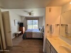 FULLY FURNISHED VACATION RENTAL Charming Lower-Level Lakeside Casita in the Heart of Fountain Hills Ideally situated just steps from iconic Fountain Park,this beautiful 2-bedroom,2-bath with unbeatable convenience. Located on the lower level for easy access,the home features a well-appointed kitchen with all the essentials for a comfortable stay. The spacious primary suite boasts a walk-in shower and private patio access,perfect for enjoying Arizona's sunny days. Steps away from sparkling community pool,whether you're here for a shorter stay in the Summer or a longer stay in the Winter season,this warm and welcoming desert retreat has everything you need.