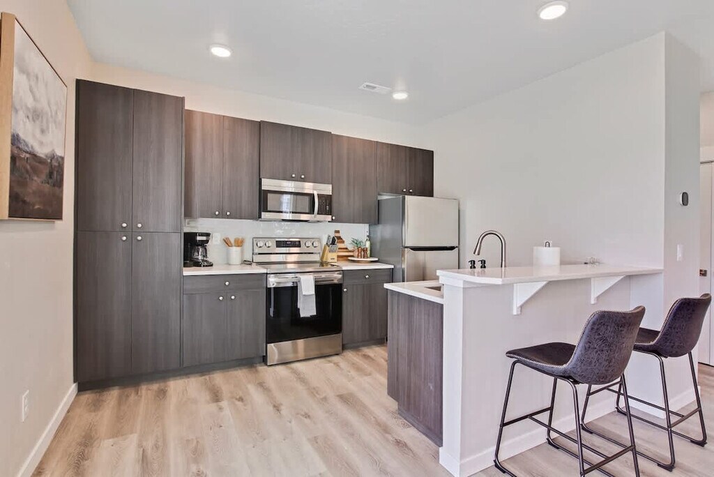 Feel at home in this stylish two-bedroom townhome situated in a brand new fourplex. This newly constructed property has been carefully curated and furnished with travelers in mind, offering the perfect place to relax and enjoy your vacation. Located close to the Ford Idaho Center and shopping, this home provides fluffy pillows, comfortable mattresses, and beautiful furnishings. This townhome features two bedrooms with one king-size bed and one queen bed, along with 2.5 bathrooms. The kitchen is lightly stocked with basic cooking supplies, and all linens are provided. Parking is conveniently available right out front of the unit. Up to two dogs are allowed with a fee of $50 for one dog and $100 for two dogs. Fees are collected post-booking during the digital check-in process. Early check-in or late check-out can be requested through the digital guestbook, subject to availability and a small fee. Located close to the Ford Idaho Center and shopping, this townhome offers easy access to local attractions and amenities. This is a smoke-free home with no smoking or vaping and no recreational drug use allowed. Violations may result in loss of deposit and additional cleaning fees. City regulations require quiet hours beginning at 10:00 PM, so please be mindful of noise levels outdoors and in common areas during this time. We offer a seamless arrival with our smart lock system, and if you need anything during your stay, we’re just a message or text away. Guests are required to digitally agree and sign house rules and the rental agreement, which will be emailed once booking is received. [SI]
