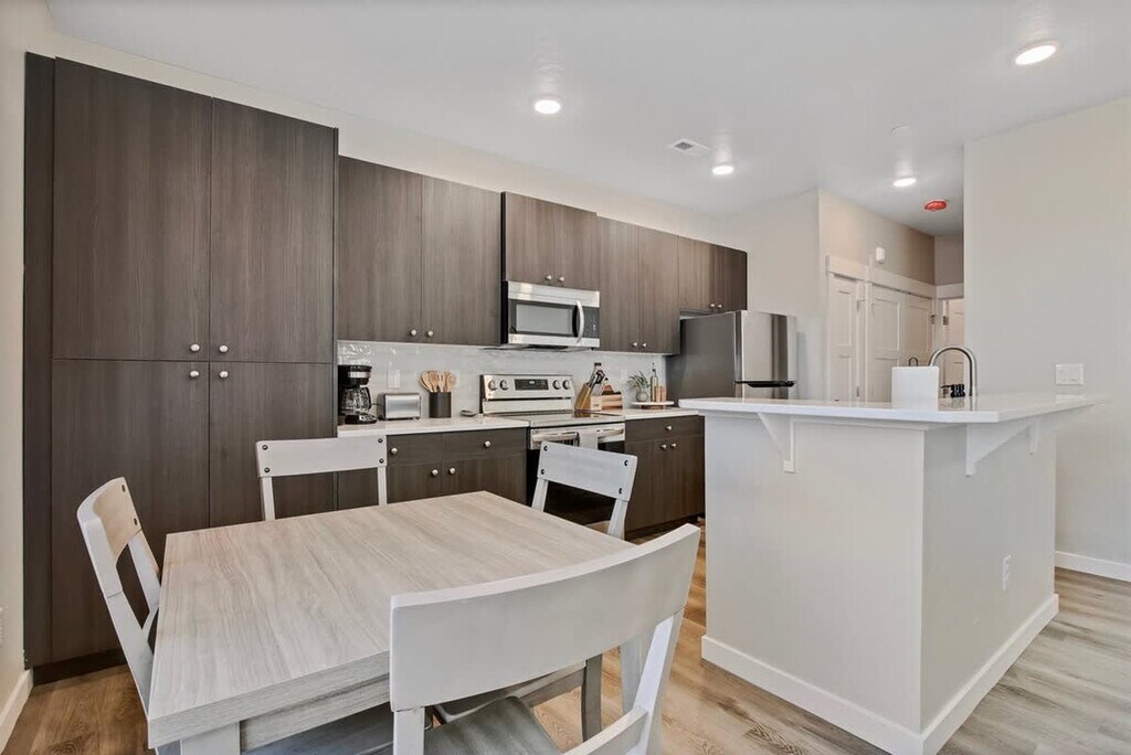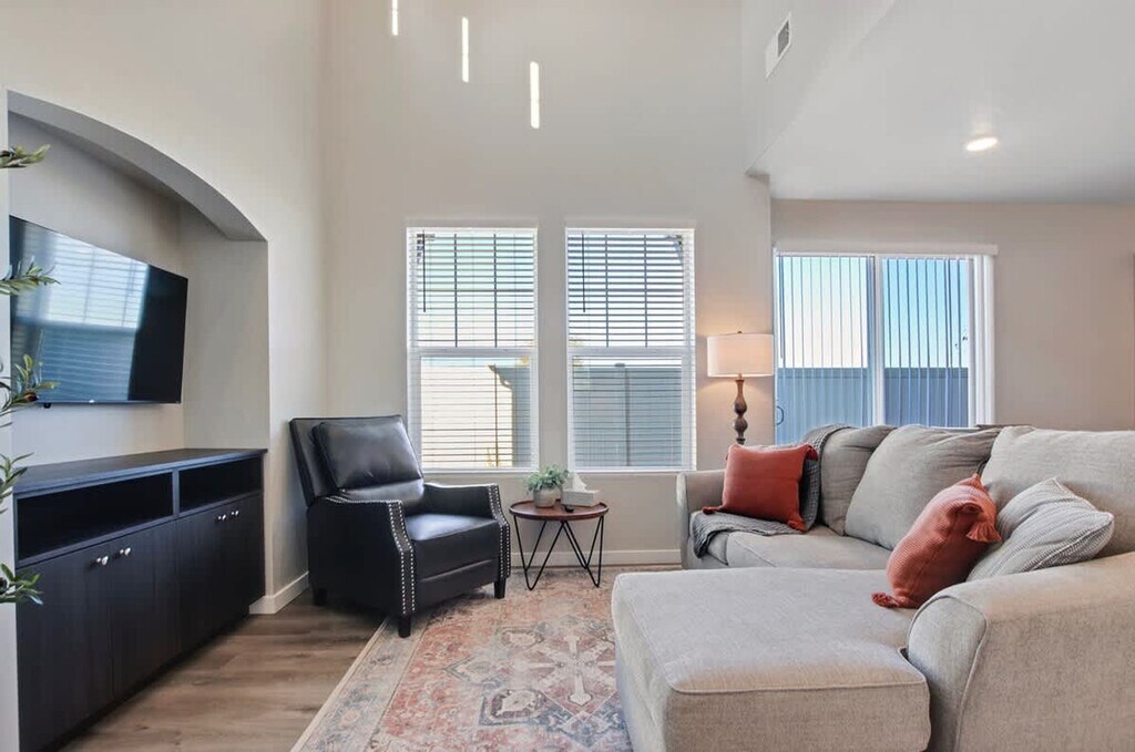 The advertised rate of $4,065/month is the lowest available price, based on a 1 month(s) stay with a move-in date of April 22, 2026. Rates vary depending on the duration of stay, season, and other parameters. For exact pricing and additional pricing components, please visit our website and enter your desired move-in and move-out dates. The rate is applicable when billed upfront; it can be higher if billed in multiple payments. Feel at home in this trendy three-bedroom townhome, nestled in a brand new fourplex. This newly constructed property has been thoughtfully curated and furnished with travelers in mind, offering the perfect retreat to relax and enjoy your vacation. Located close to the Ford Idaho Center and shopping, this townhome provides convenience and comfort. This townhome features three bedrooms with one king-size bed, one queen bed, and two twin beds, along with three bathrooms. The kitchen is lightly stocked with basic cooking supplies, and all linens are provided for your stay. Parking is conveniently available right in front of the unit. Parking is available right in front of the unit. Up to two dogs are allowed with a fee of $50 for one dog and $100 for two dogs. Fees are collected post-booking during the digital check-in process. Early check-in or late check-out can be requested through the digital guestbook, subject to availability and a small fee. Situated near the Ford Idaho Center, this townhome offers easy access to shopping and local attractions, making it an ideal location for exploring the area. This is a smoke-free home with no smoking or vaping allowed. Violations may result in loss of deposit and additional cleaning fees. City regulations require quiet hours beginning at 10:00 PM, so please be mindful of noise levels outdoors and in common areas. Enjoy a seamless arrival with our smart lock system, and if you need anything during your stay, we’re just a message or text away. Guests are required to digitally agree and sign house rules and the rental agreement, which will be emailed once booking is received. [SI]