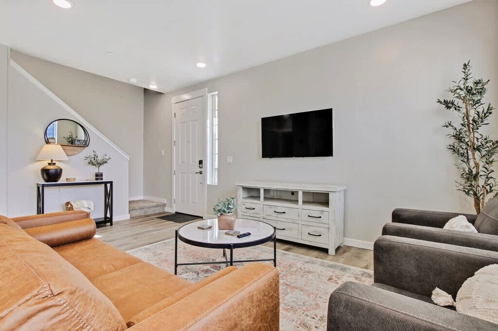 Feel at home in this elegant two-bedroom townhome situated in a brand new fourplex. This newly constructed property has been carefully curated and furnished with travelers in mind, offering the perfect place to relax and enjoy your vacation. Close to the Ford Idaho Center and shopping, this townhome features fluffy pillows, comfortable mattresses, and beautiful furnishings. The townhome includes two bedrooms with one king-size bed and one queen bed, and 2.5 bathrooms. The kitchen is lightly stocked with basic cooking supplies, and all linens are provided. Parking is conveniently available right in front of the unit. Up to two dogs are allowed with a fee of $50 for one dog and $100 for two dogs. Fees are collected post-booking during the digital check-in process. Early check-in or late check-out can be requested through the digital guestbook, subject to availability and a small fee. Located close to the Ford Idaho Center and shopping, this townhome offers easy access to local attractions and amenities. This is a smoke-free home with no smoking or vaping and no recreational drug use allowed. Violations may result in loss of deposit and additional cleaning fees. City regulations require quiet hours beginning at 10:00 PM, so please be mindful of noise levels outdoors and in common areas during this time. Enjoy seamless arrival with our smart lock system, and if you need anything during your stay, we’re just a message or text away. Guests are required to digitally agree and sign house rules and rental agreement which will be emailed once booking is received. [SI]