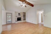 Welcome to this captivating 1-story home boasting a spacious living room adorned with a wood beam vaulted ceiling, complemented by a charming gas wood burning stone fireplace flanked by built-in bookcases. Wood laminate flooring graces the living space, dining area, kitchen, and bedrooms, while the bathrooms boast elegant tile flooring. The gallery-style kitchen comes equipped with modern appliances, including an updated stainless steel gas range and microwave, a convenient pantry, and seamless access to the dining area for effortless entertaining. Step outside to a sprawling, private backyard, providing a serene oasis for gatherings with loved ones. With no rear neighbors, you'll relish in the added seclusion. The extended covered patio sets the stage for outdoor furniture, creating an inviting space for socializing or unwinding on a leisurely afternoon. Perfectly situated, this home is just a stone's throw away from Vic Robertson Elementary and a short bike ride from Robert P. Hernandez Middle School and Stony Point High School. Please note that the refrigerator is not maintained. MLS ID 4749440