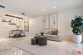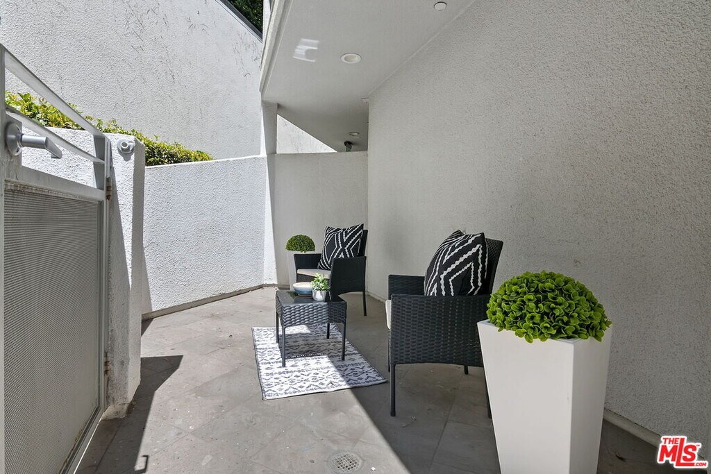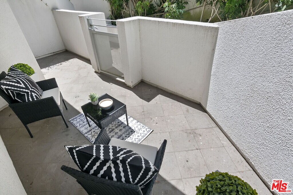 This private and well-appointed 2 level Brentwood townhouse offers serene city/mountain views and a thoughtfully designed, spacious layout. The upper level features an open floor plan with a modern kitchen outfitted with stainless steel appliances, a dedicated dining area, a large living room with marble floors, a gas fireplace, a guest powder room, and a glass-enclosed office or bonus space filled with natural light. Downstairs, you'll find both generously sized bedrooms. The expansive primary suite offers a sitting area, two closets (including a walk-in), and a well-appointed en-suite bath with a separate shower and soaking tub. The second bedroom also features its own full bathroom. This level includes a laundry area with side-by-side washer and dryer, additional storage, and access to a private outdoor patio. Additional features include a Nest thermostat, two side-by-side parking spaces, ample guest parking, and a dedicated storage cage above the parking area. Enjoy access to a pool, spa, sauna, and gym within a controlled-access building. Ideally situated with easy access to UCLA, the 405, top-rated schools, and Brentwood's shops and restaurants just moments away. MLS# 26647807