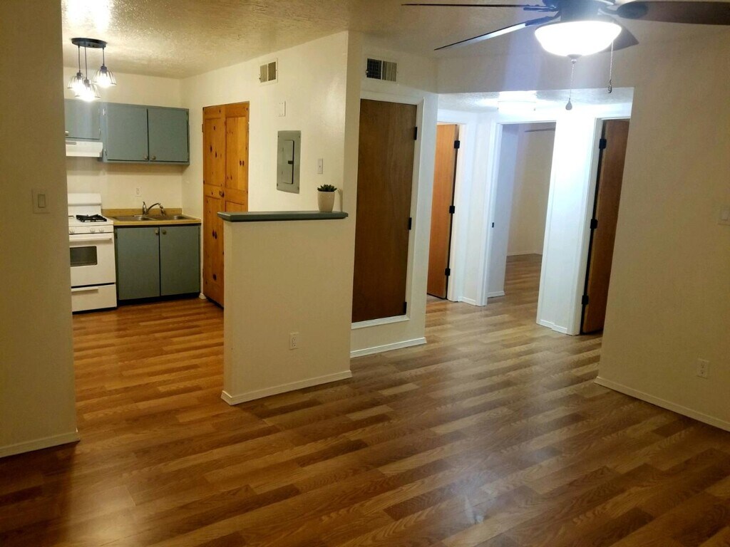 Discover this inviting 2-bedroom, 1-bath apartment w/Shower/Tub; large entry room; Open and bright living room and kitchen/dining, w/ lots of cabinets; new paint throughout apt. Featuring modern laminate countertops, hardwood flooring, and large closets, this unit offers comfort and style. Enjoy natural light enhanced by framed mirrors and ceiling fans. The private patio provides a perfect outdoor retreat. Equipped with a full range, refrigerator, washer, dryer, and washer/dryer hookups, this home meets all your needs. Tenant pays utilities; pets negotiable. Lease term is 12 months with no smoking or drugs allowed. Pets negotiable. Schedule a tour today to experience this charming residence. Available Now - The property is located within a quiet cul-de-sac off of West Alameda. If you are looking for a quiet setting with neighbors that are courteous and respectful of each other and the property, this apartment is for you! Great location! Recently, renovated with new flooring,...