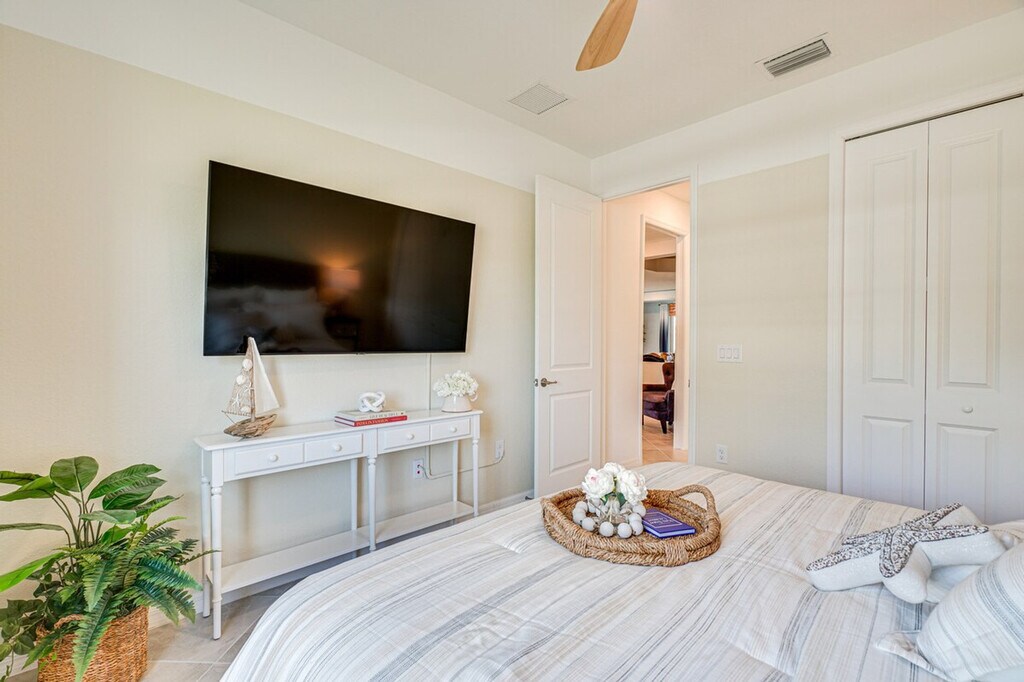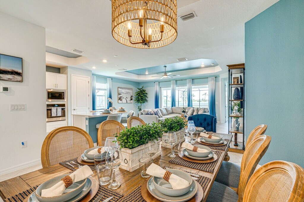 The advertised rate of $9,176/month is the lowest available price, based on a 30 day(s) stay with a move-in date of August 31, 2026. Rates vary depending on the duration of stay, season, and other parameters. For exact pricing and additional pricing components, please visit our website and enter your desired move-in and move-out dates. The rate is applicable when billed upfront; it can be higher if billed in multiple payments. Feel at home in this luxurious 4-bedroom, 2-bath home in Venice, Florida, boasting easy access to top-class golf courses, scenic sites, and sandy beaches. This single-story property requires one exterior step to access. This vacation rental has a fully equipped kitchen with a refrigerator, stove, oven, dishwasher, Keurig coffee maker, toaster, microwave, cooking basics, dishware/flatware, paper towels, and trash bags. Enjoy the idyllic backyard oasis with a covered patio, dining space, lounge area with a Smart TV, screened-in lanai, outdoor pool (depth 3’-5’), hot tub, Adirondack chairs, and a gas grill. Entertainment is provided by one 55" Smart TV, four 65" Smart TVs, and one 85" Smart TV, a dining table, a breakfast bar, board games, books, coastal decor, an open floor plan, and large sliding glass doors. Additional amenities include free Wi-Fi, central air conditioning and heating, ceiling fans, a washer and dryer, laundry detergent, an iron/board, linens and towels, complimentary toiletries, hangers, and keyless entry. The community golf course is available for guest use with a $250 entry fee with an additional $30 fee per round. Prior to your arrival, please let the Guest Contact know if you are interested in playing. Enjoy easy access to Wellen Park Golf & Country Club and CoolToday Park, which is 3 miles away. Fun-filled attractions await in the surrounding area. No smoking, pets, events, parties, or large gatherings are allowed. Guests must be at least 25 years old to book. This property features a Ring doorbell device with an exterior security camera facing the front outdoor entry. The camera does not look into any interior spaces. The camera actively records video when motion is detected by the device or when the video doorbell button is pressed. Guests will have access to the entire property via keyless entry. [SI]