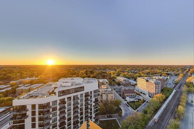 Ready to move in. Open floor plan, granite counters, and maple cabinets in kitchen, newer engineered hardwood floors throughout, huge floor-to-ceiling windows in every room (wellness), in-unit laundry, and balcony. Spacious bedroom and beautiful bath. Huge walk-in closet in primary bedroom, heated parking garage & storage,locker included. Beautiful Vistas 280-degree unique view from this TOP-floor condo!!! so you are able to see the Northshore and the lake. A must-see! On TOP of the World.All of these in a well-managed building with amenities that include 24-hour door staff, pool, jacuzzi, fitness center, 4th-floor deck with Room & Board, patio furniture, a business center, bike room, indoor heated parking garage, and EV charging for electric cars available. 5 health reasons to move to Optima Views: Internal gym & parking. Walk everywhere & get your 8,000 steps in. Natural light abounds. Near large water, parks & health centers. Farmers market steps away, 2 trains a sprint away, and a Social club for longevity.Time to put yourself and your health 1st, Evanston is unique & so are you! No special assessments