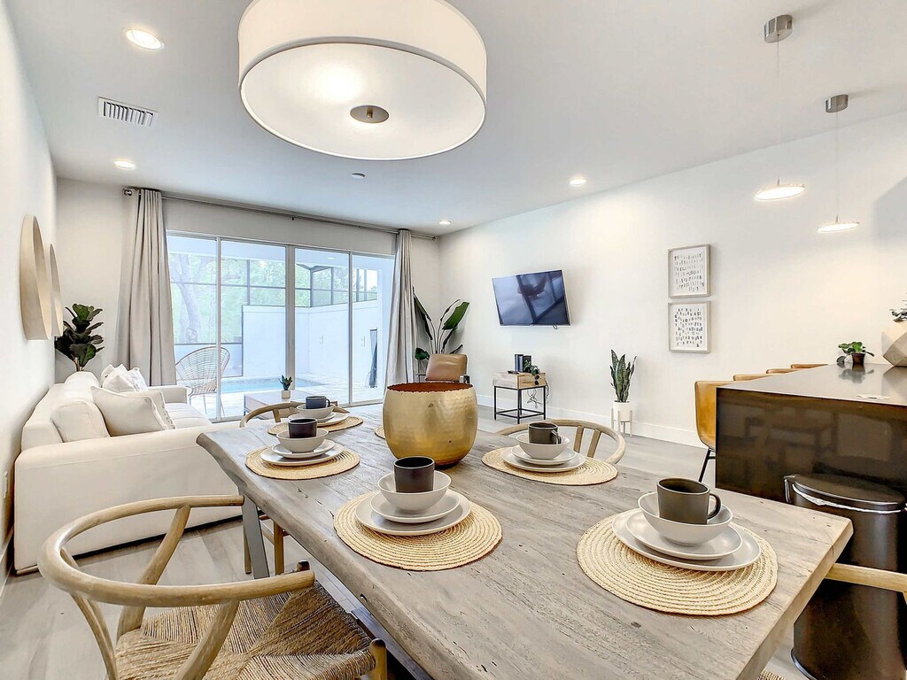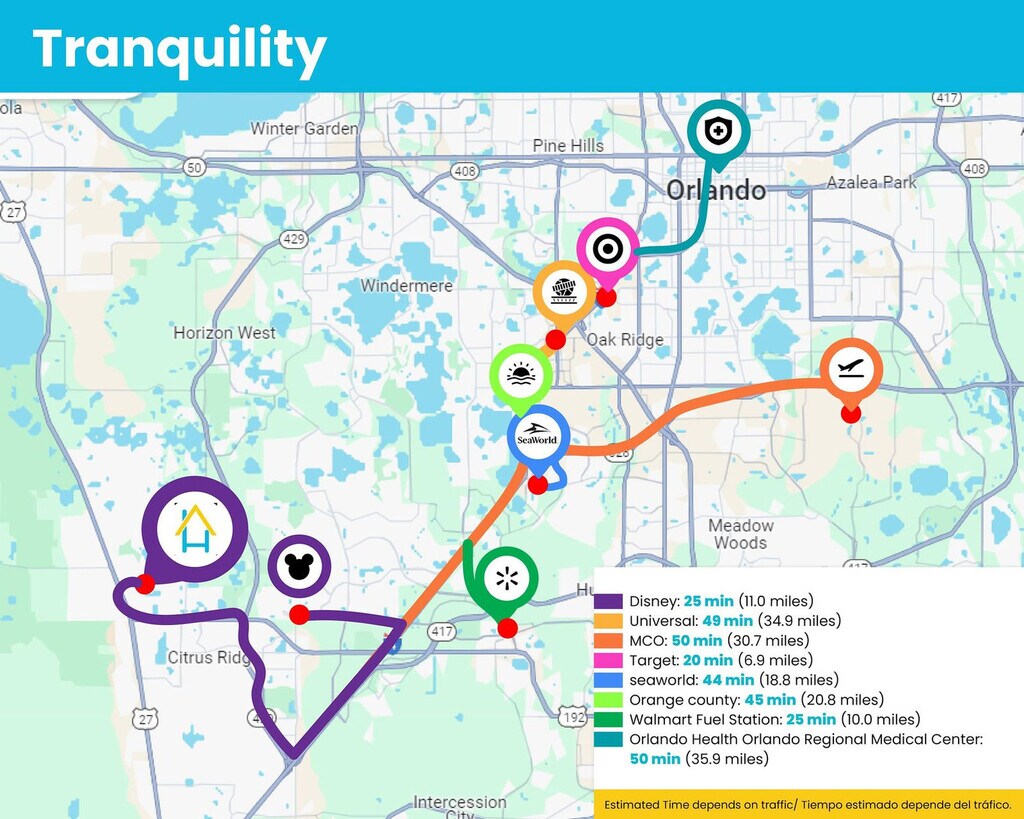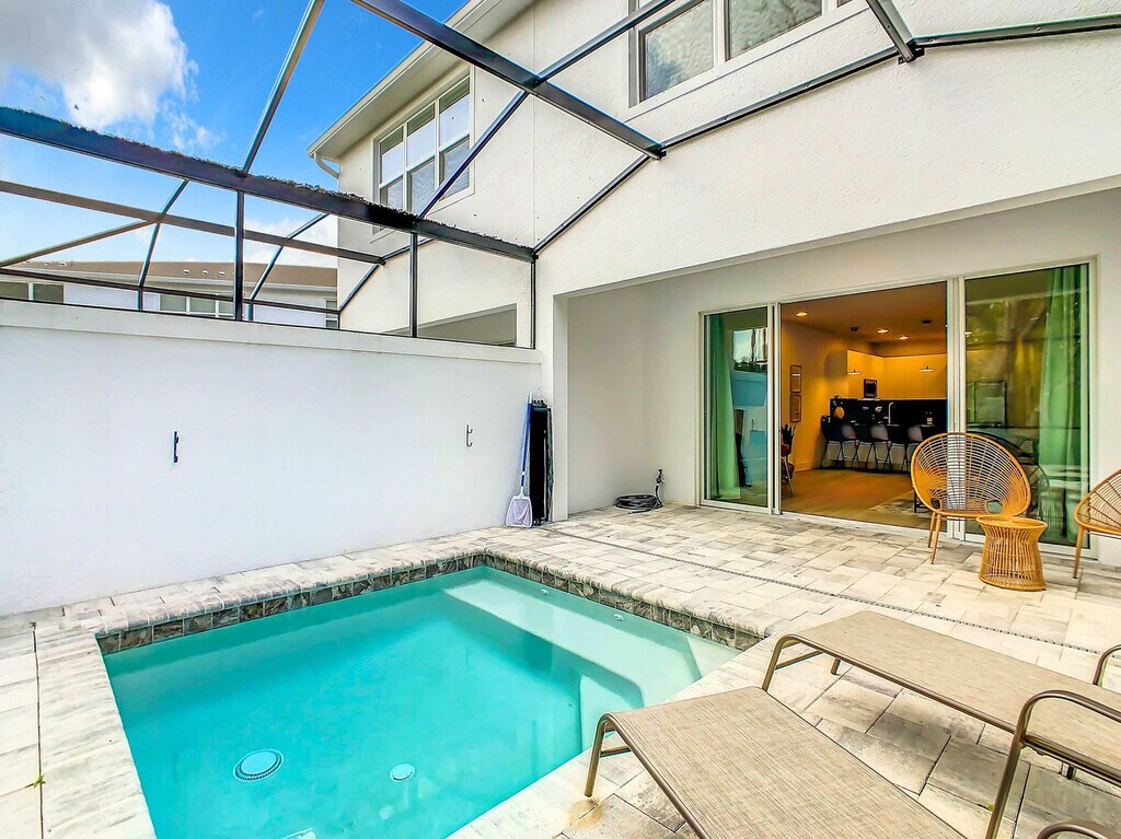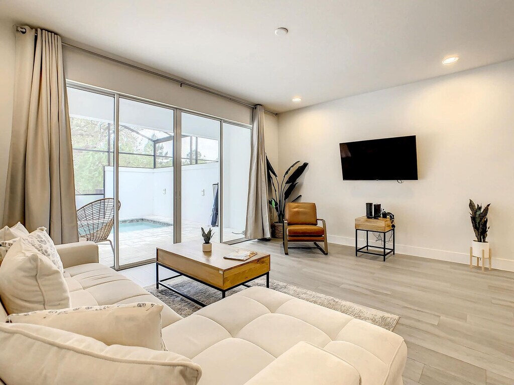 Experience the excitement of the new Epic Universe park this May 22nd by staying in this stunning townhouse with a private pool located in the peaceful Tranquility resort. Enjoy serene views of nature while being close to world-class attractions, golf courses, restaurants, and shopping. The townhouse boasts modern design with bright and stylish exteriors complemented by elegant stonework and features comfortable furnishings and a fully equipped kitchen. The townhouse is equipped with a fully equipped kitchen, air conditioning, bed linens, four smart digital-cable TVs, patio furniture, hair dryers, a washer and dryer, ironing supplies, free parking, high-speed internet, and hangers. The second floor includes a master bedroom with a king-size bed and flat-screen smart TV, a bedroom with two queen-size beds, and a social bathroom. The first floor has a bedroom with a queen-size bed and smart TV, a social bathroom, a living room with a digital smart TV and a sofa bed, and a social area with a fully equipped kitchen, dining room, and private pool and patio. Optional paid services include pool heating, pack and play, high chair, early check-in, and late check-out. Please message prior to acquiring any service to check availability. Located just minutes away from the new Epic Universe park, this townhouse offers unbeatable comfort. Publix and Starbucks are nearby, and Disney is a 25-35 minute drive away. The property is also close to various dining and shopping options, including Publix Supermarket, Walmart Supercenter, Flamingo Crossings, Disney Springs, and Orlando Vineland Premium Outlets. Nearby parks and recreation include Walt Disney World, Universal Orlando, SeaWorld, Orange Lake Golf, Highlands Reserve Golf, Showcase of Citrus, Lake Louisa State Park, and Island H2O Water Park. Guests must be at least 18 years old to book a reservation. No unregistered guests, smoking, or pets are allowed inside the unit. The property is exclusively for vacation use, and filming or use as a warehouse is not permitted without prior authorization. The property is keyless, with a code provided prior to check-in. A safety protocol is in place to ensure the well-being of guests and personnel, and pre-check-in cleaning is conducted according to World Health Organization and Health and Safety Executive standards. Guests are expected to take care of the home as they would their own.