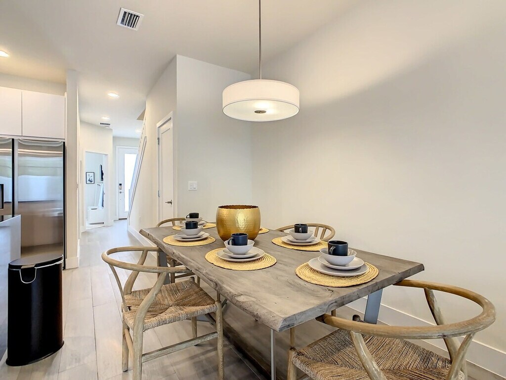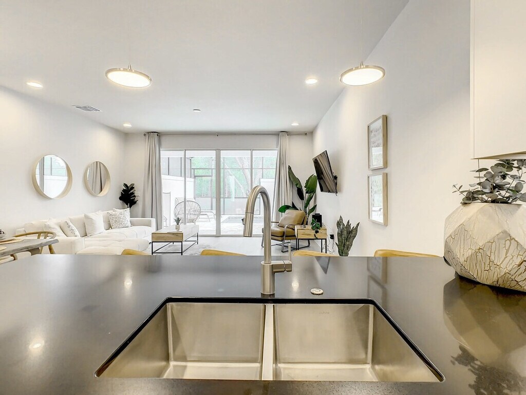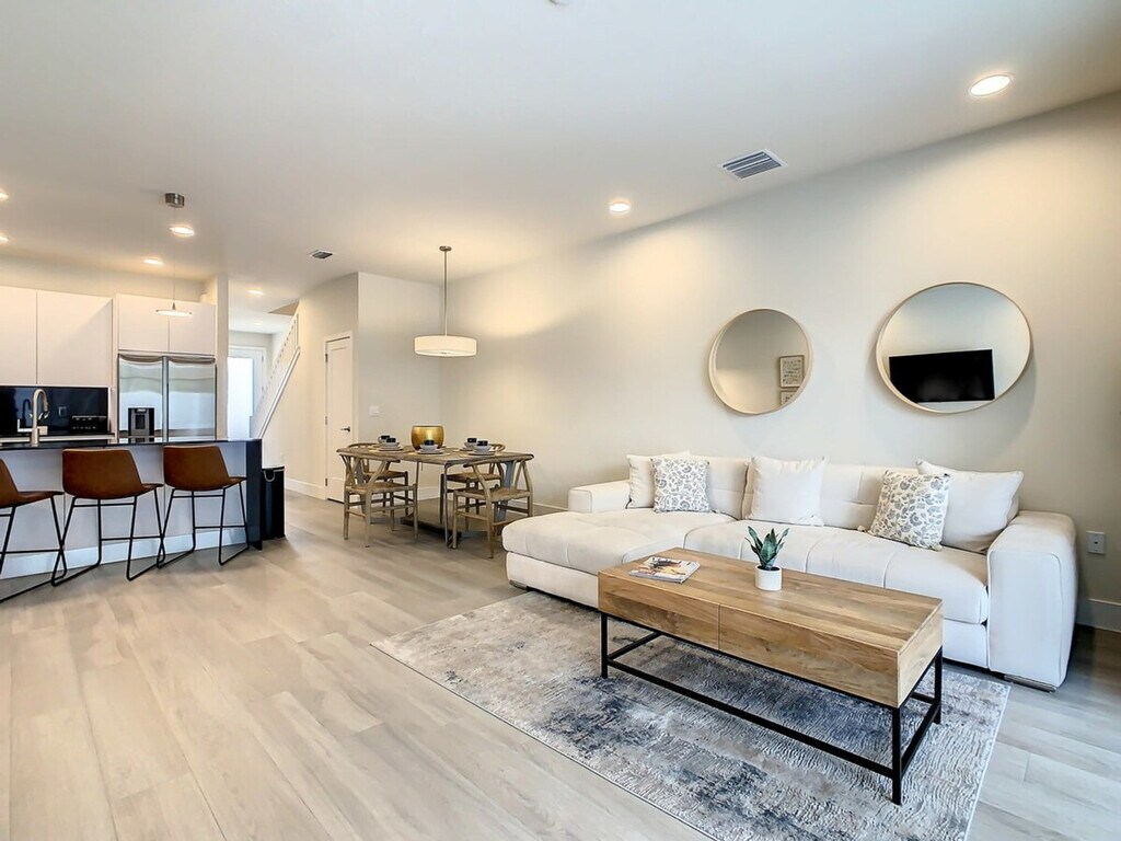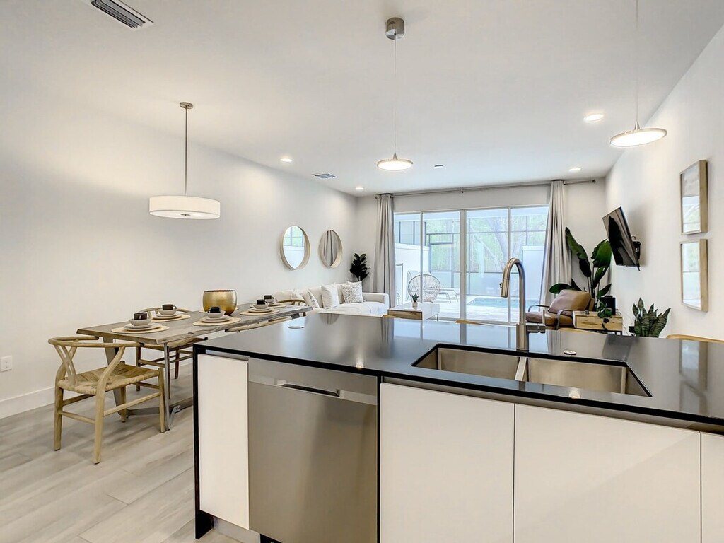 Experience the excitement of the new Epic Universe park this May 22nd by staying in this stunning townhouse with a private pool located in the peaceful Tranquility resort. Enjoy serene views of nature while being close to world-class attractions, golf courses, restaurants, and shopping. The townhouse boasts modern design with bright and stylish exteriors complemented by elegant stonework and features comfortable furnishings and a fully equipped kitchen. The townhouse is equipped with a fully equipped kitchen, air conditioning, bed linens, four smart digital-cable TVs, patio furniture, hair dryers, a washer and dryer, ironing supplies, free parking, high-speed internet, and hangers. The second floor includes a master bedroom with a king-size bed and flat-screen smart TV, a bedroom with two queen-size beds, and a social bathroom. The first floor has a bedroom with a queen-size bed and smart TV, a social bathroom, a living room with a digital smart TV and a sofa bed, and a social area with a fully equipped kitchen, dining room, and private pool and patio. Optional paid services include pool heating, pack and play, high chair, early check-in, and late check-out. Please message prior to acquiring any service to check availability. Located just minutes away from the new Epic Universe park, this townhouse offers unbeatable comfort. Publix and Starbucks are nearby, and Disney is a 25-35 minute drive away. The property is also close to various dining and shopping options, including Publix Supermarket, Walmart Supercenter, Flamingo Crossings, Disney Springs, and Orlando Vineland Premium Outlets. Nearby parks and recreation include Walt Disney World, Universal Orlando, SeaWorld, Orange Lake Golf, Highlands Reserve Golf, Showcase of Citrus, Lake Louisa State Park, and Island H2O Water Park. Guests must be at least 18 years old to book a reservation. No unregistered guests, smoking, or pets are allowed inside the unit. The property is exclusively for vacation use, and filming or use as a warehouse is not permitted without prior authorization. The property is keyless, with a code provided prior to check-in. A safety protocol is in place to ensure the well-being of guests and personnel, and pre-check-in cleaning is conducted according to World Health Organization and Health and Safety Executive standards. Guests are expected to take care of the home as they would their own.