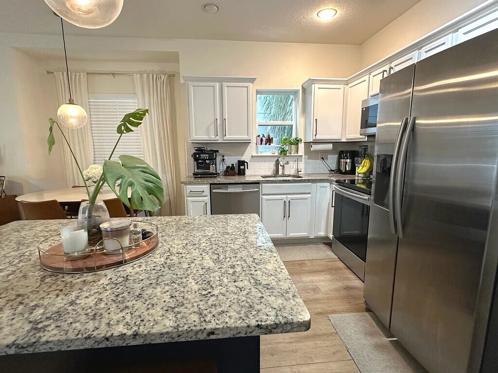 Experience the best of Tampa living in this 3 bedroom, 2.5 bath two-story home located in the pocket of Old West Tampa, less than a mile from Armature Works and minutes from Hyde Park and Downtown. Built in 2016 and freshly upgraded with a brand new AC, this home blends modern comfort with a prime location at the center of it all. The kitchen, dining, and living areas flow seamlessly together, creating the perfect space for hanging out and relaxing. The kitchen is equipped with granite countertops, stainless steel appliances, and a central island that doubles as a dining spot. The primary suite is conveniently located on the first floor, complete with an en-suite bath for privacy and ease. Upstairs, you’ll find two additional large bedrooms, a shared full bath, and a spacious loft area that can flex as an office or gym. Step outside to your private fenced backyard perfect to enjoy Tampa's beautiful weather. A brand new Publix will be opening at the end of the year, less than a mile away.
